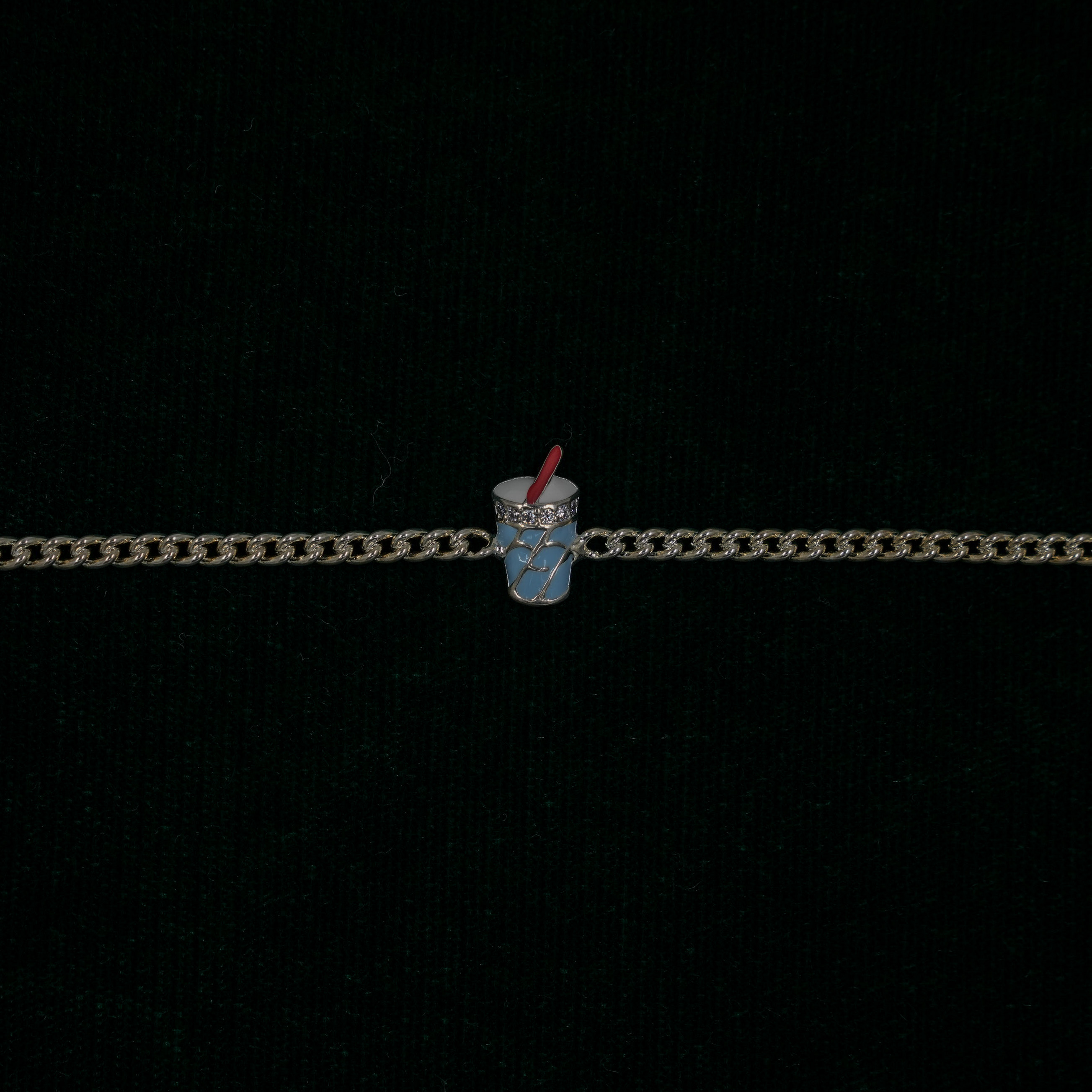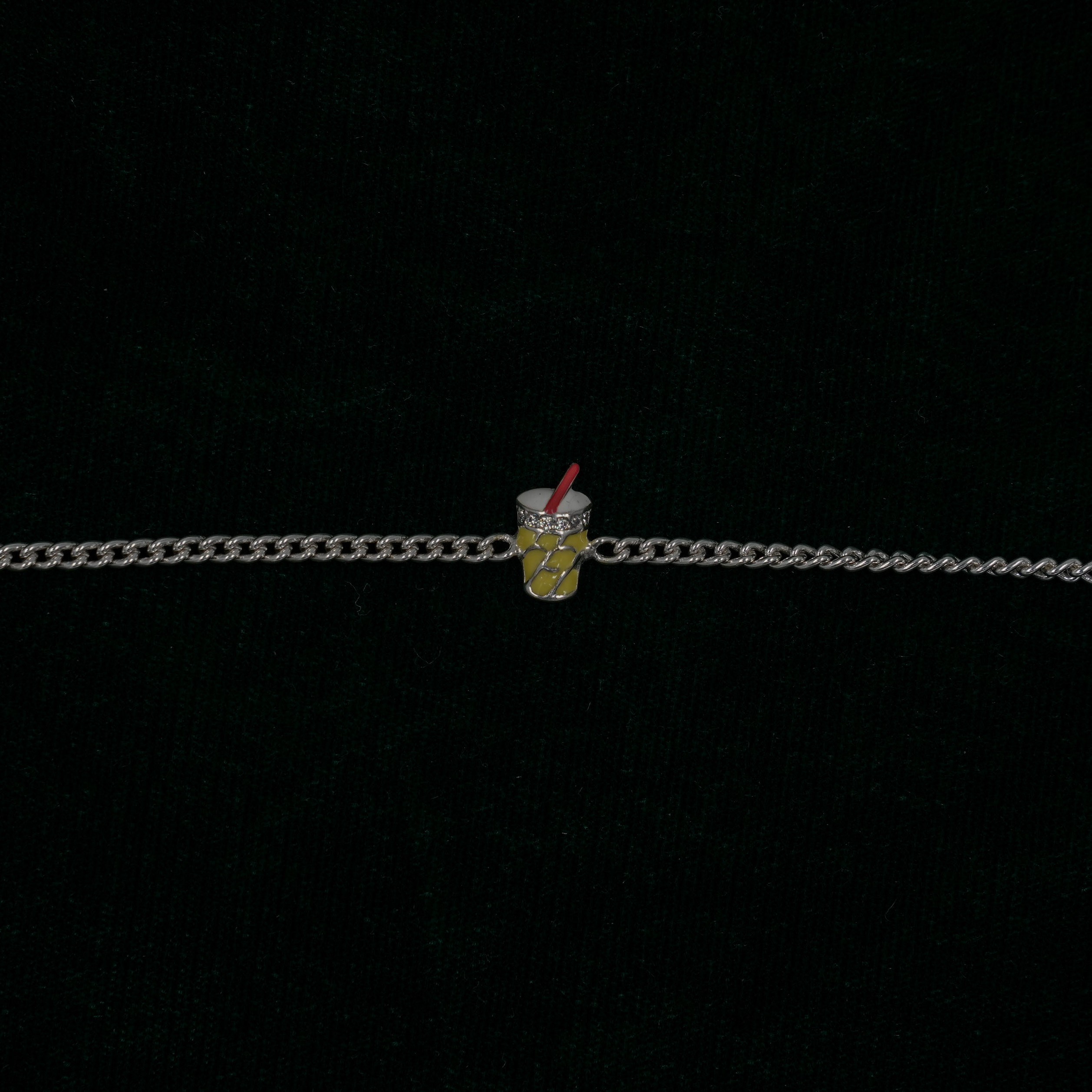 Delicate silver charm bracelet with a cute drink charm, perfect for everyday wear or as a gift. Buy silver charm bracelet from Raag Silver Jewellery in Hyderabad.