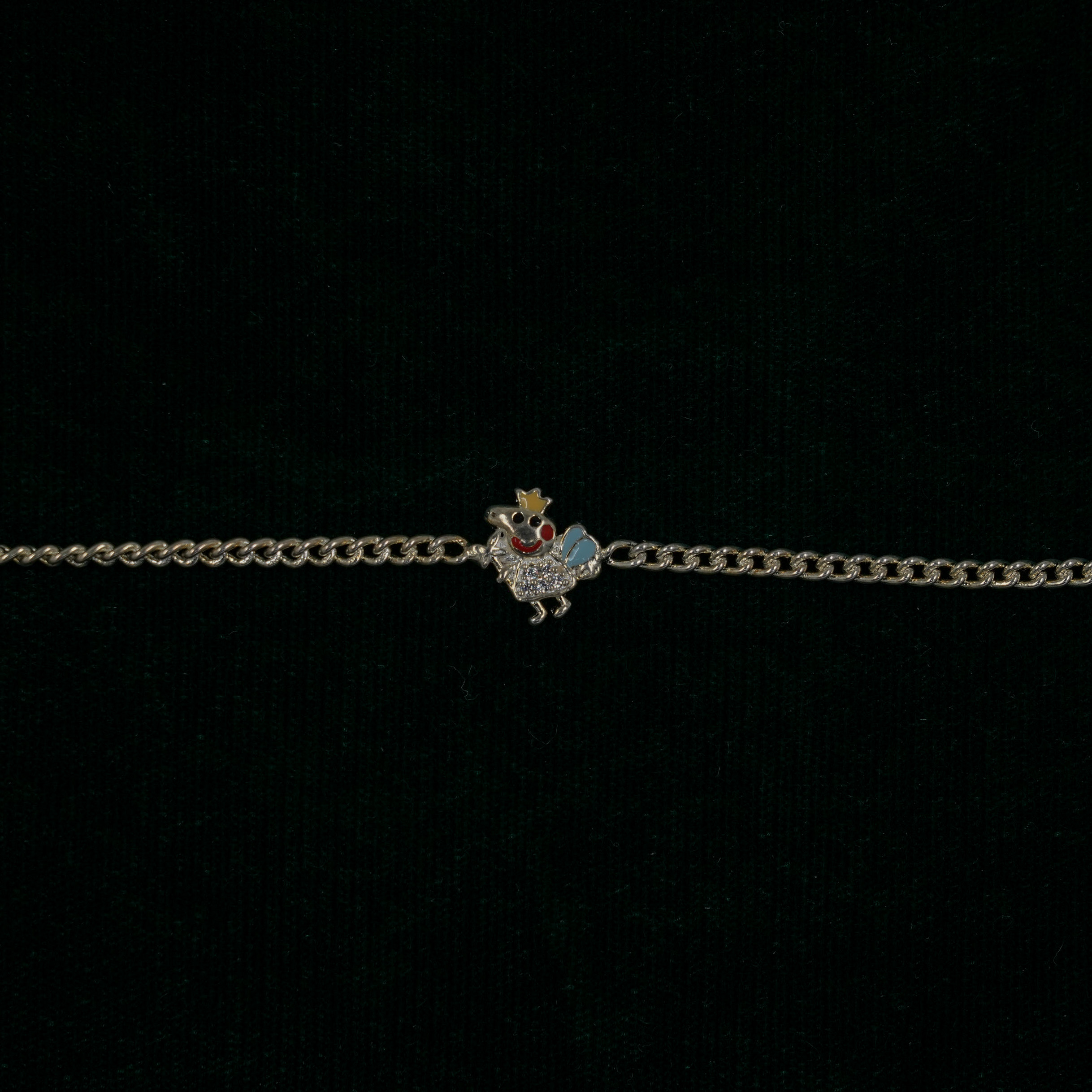 Cute silver bracelet with cartoon character, perfect for kids birthdays and special occasions. Buy silver kids bracelet from Raag Silver Jewellery in Hyderabad.