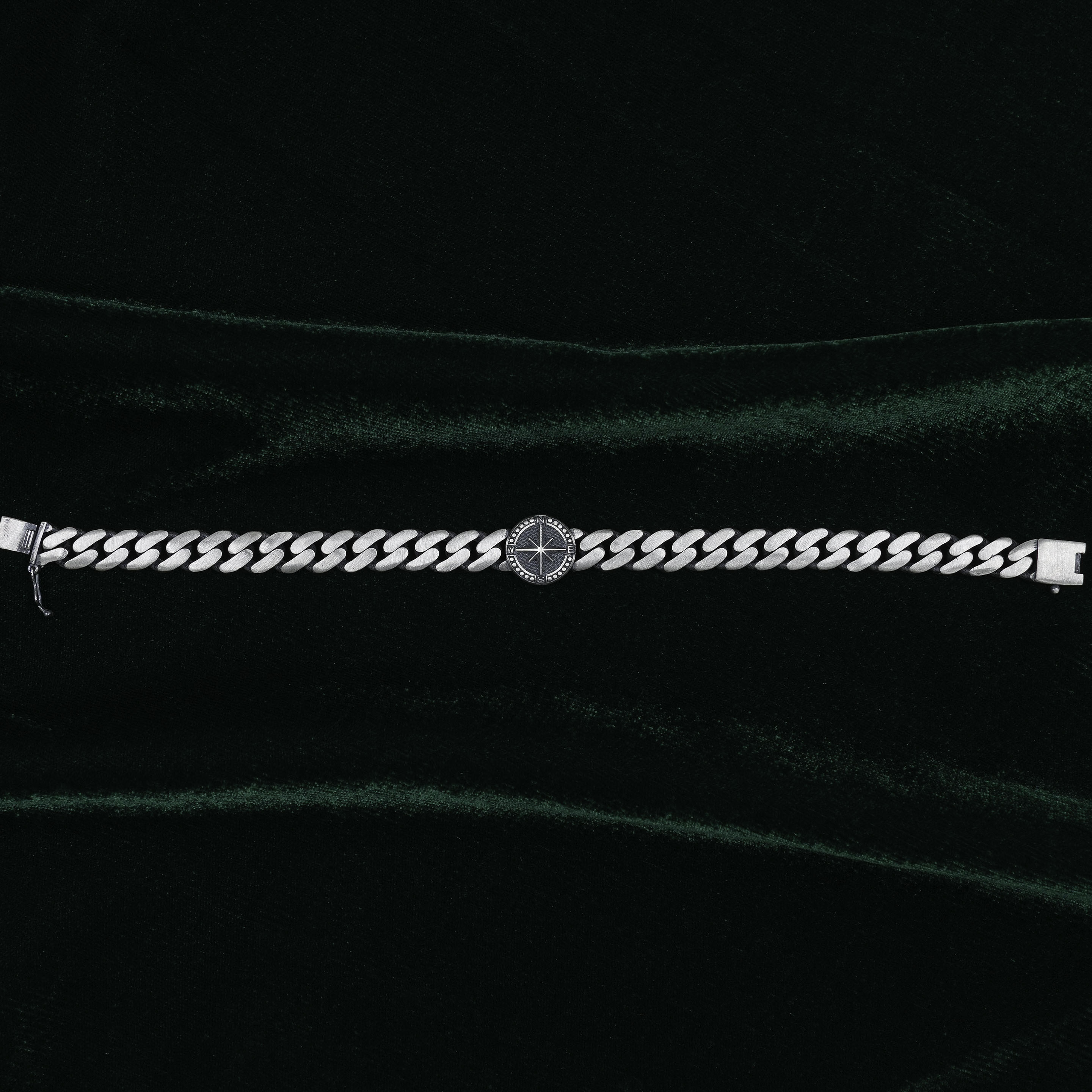 Silver Oxidised Compass Design Curb Link Silver Bracelet