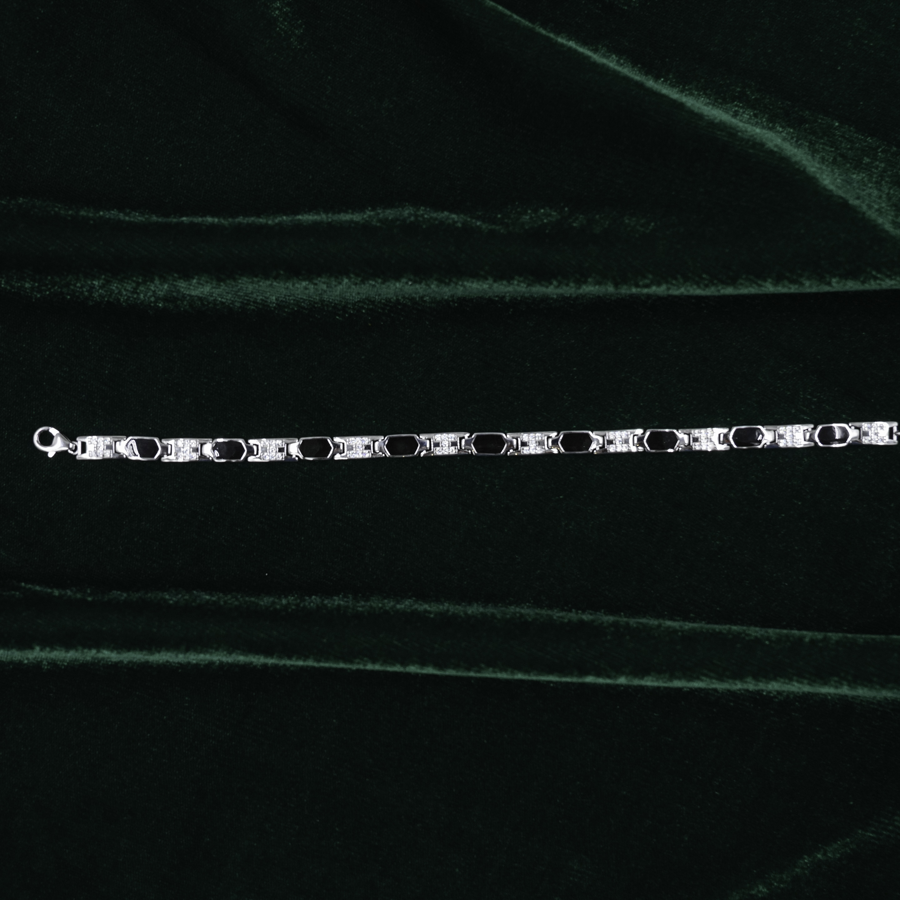 Elegant Silver Square Link Bracelet With Black Stone Setting Jewellery
