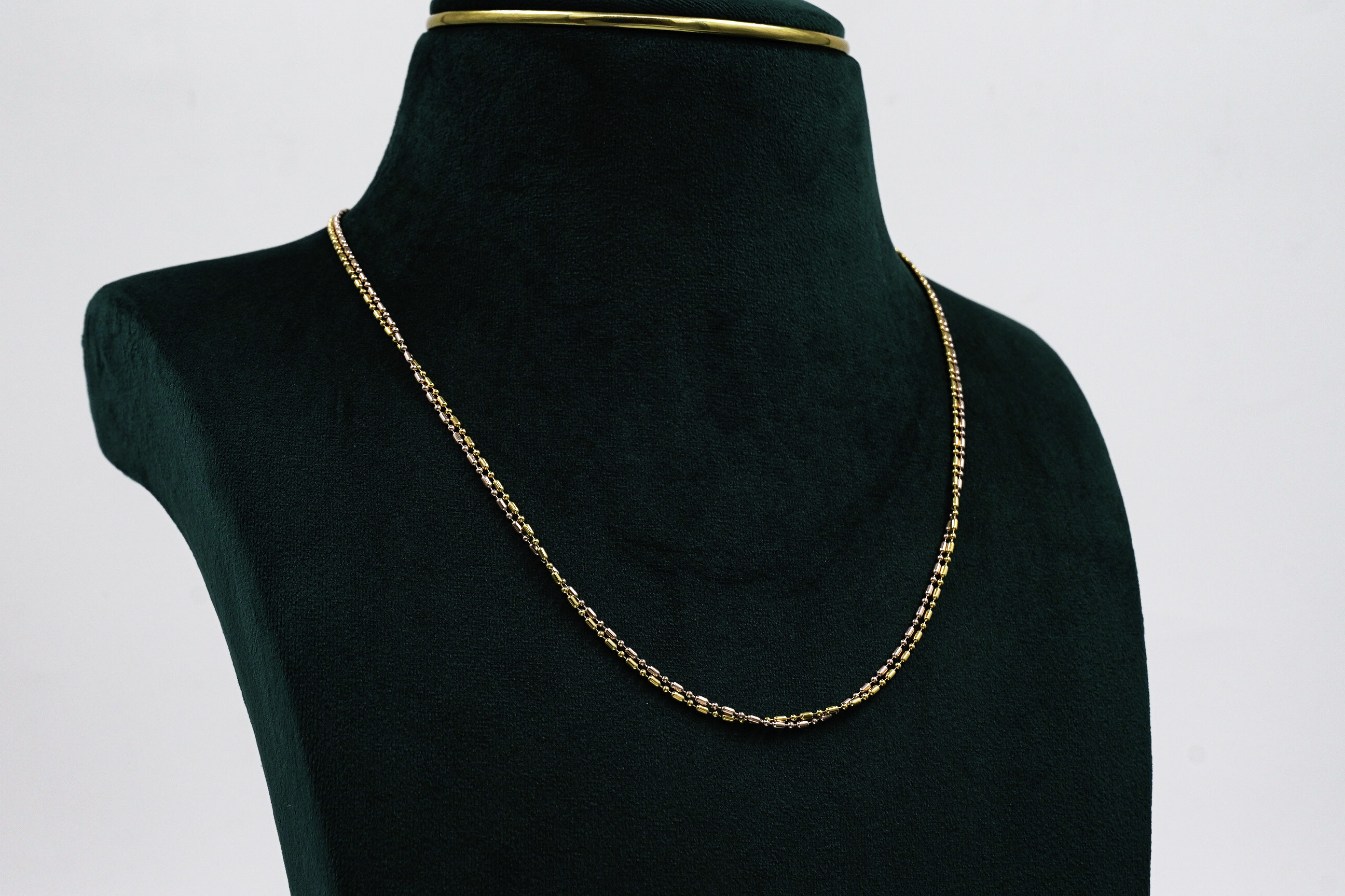 Elegant tricolor Gold Polished Silver chain necklace, perfect for everyday wear or special occasions. Buy tricolor Gold Polished Silver chain from Raag Silver Jewellery in Hyderabad.