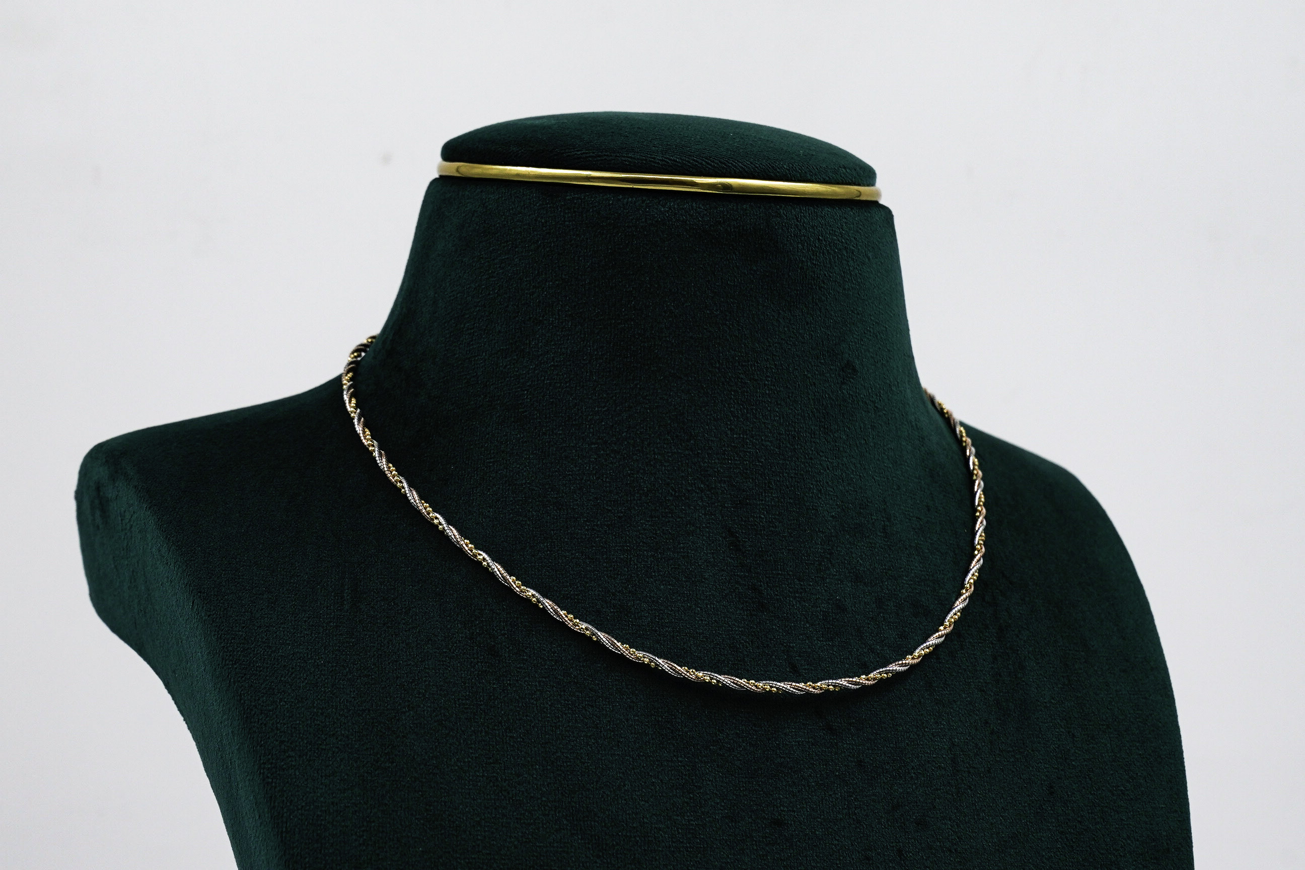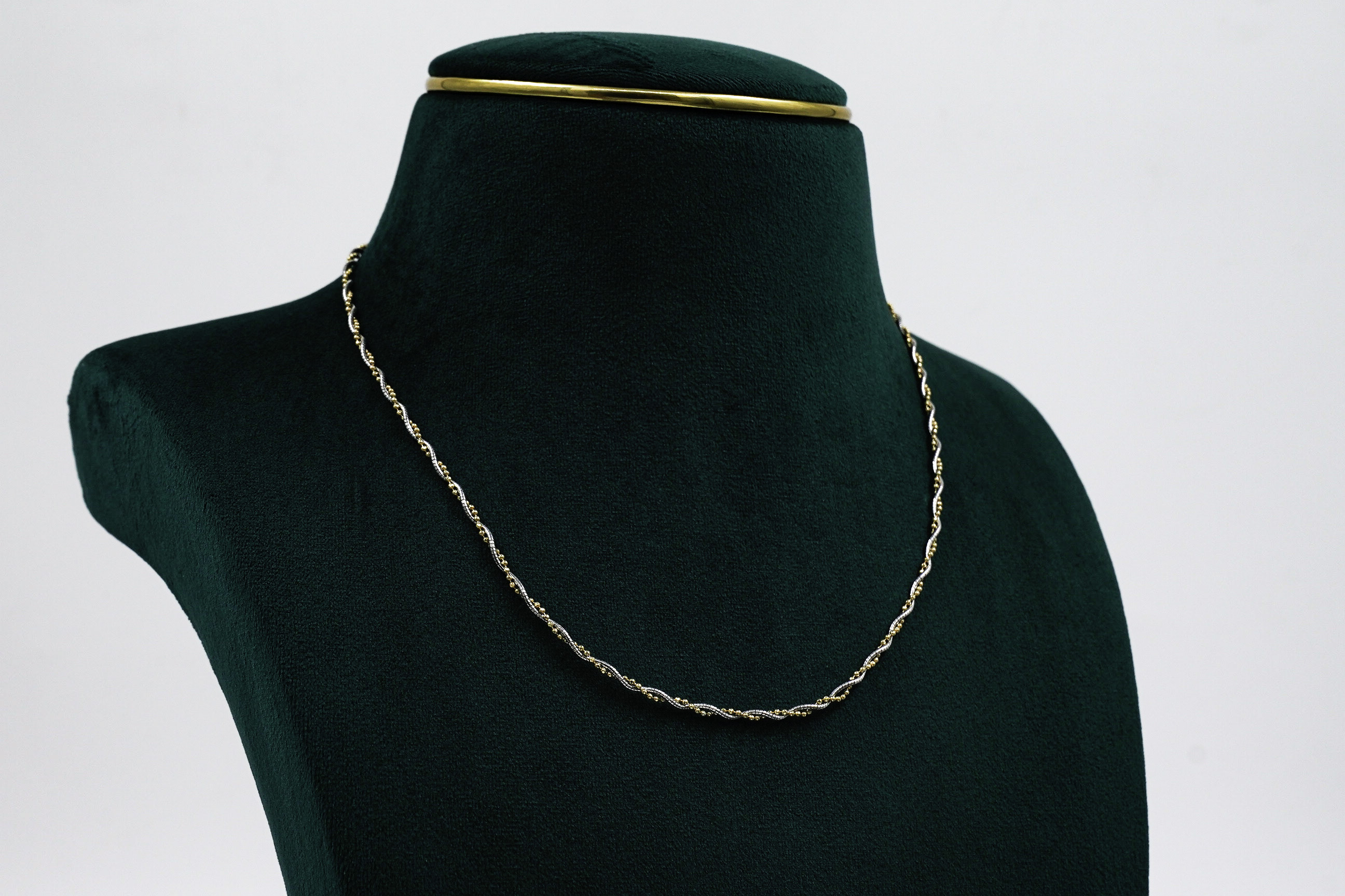 Elegant Gold Polished Silver floral necklace featuring a delicate triple-strand design, perfect for special occasions. Buy Gold Polished Silver floral necklace from Raag Silver Jewellery in Hyderabad.