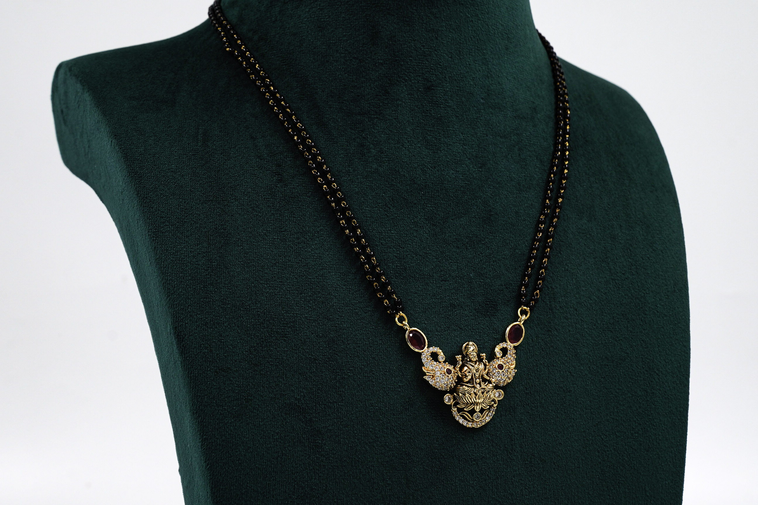 Elegant Gold Polished Silver necklace featuring Goddess Lakshmi, perfect for traditional occasions and celebrations. Buy Gold Polished Silver Lakshmi Necklace from Raag Silver Jewellery in Hyderabad.