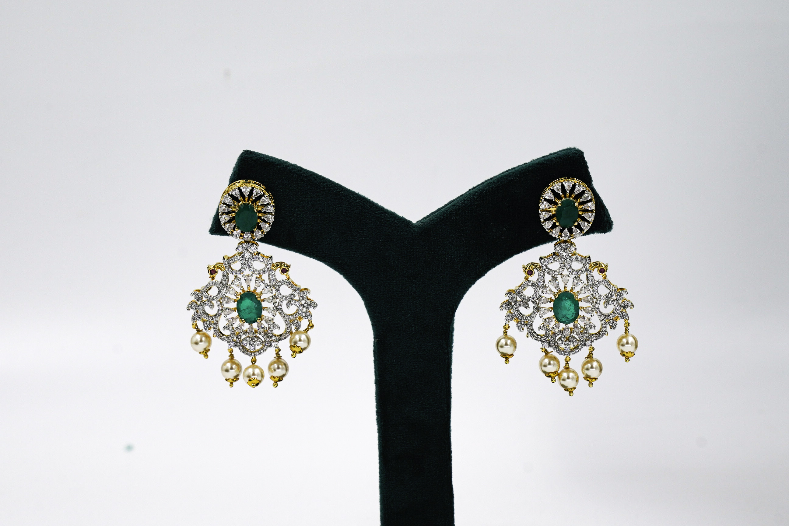 Elegant emerald and silver necklace with intricate detailing, perfect for weddings and special occasions. Buy Emerald Silver Necklace from Raag Silver Jewellery in Hyderabad.
