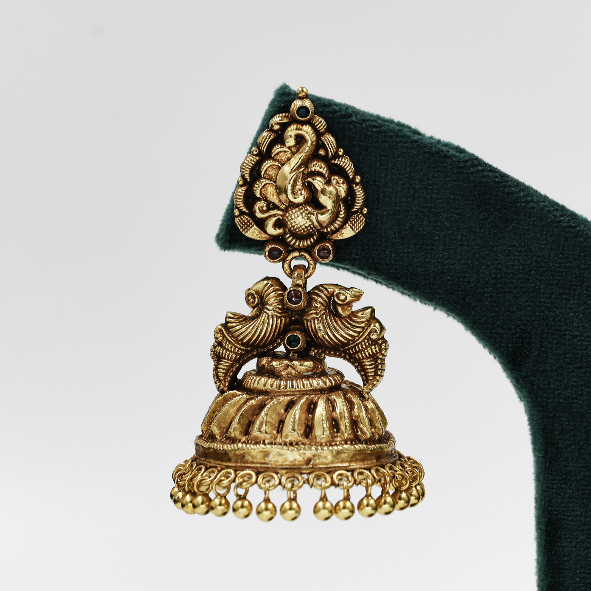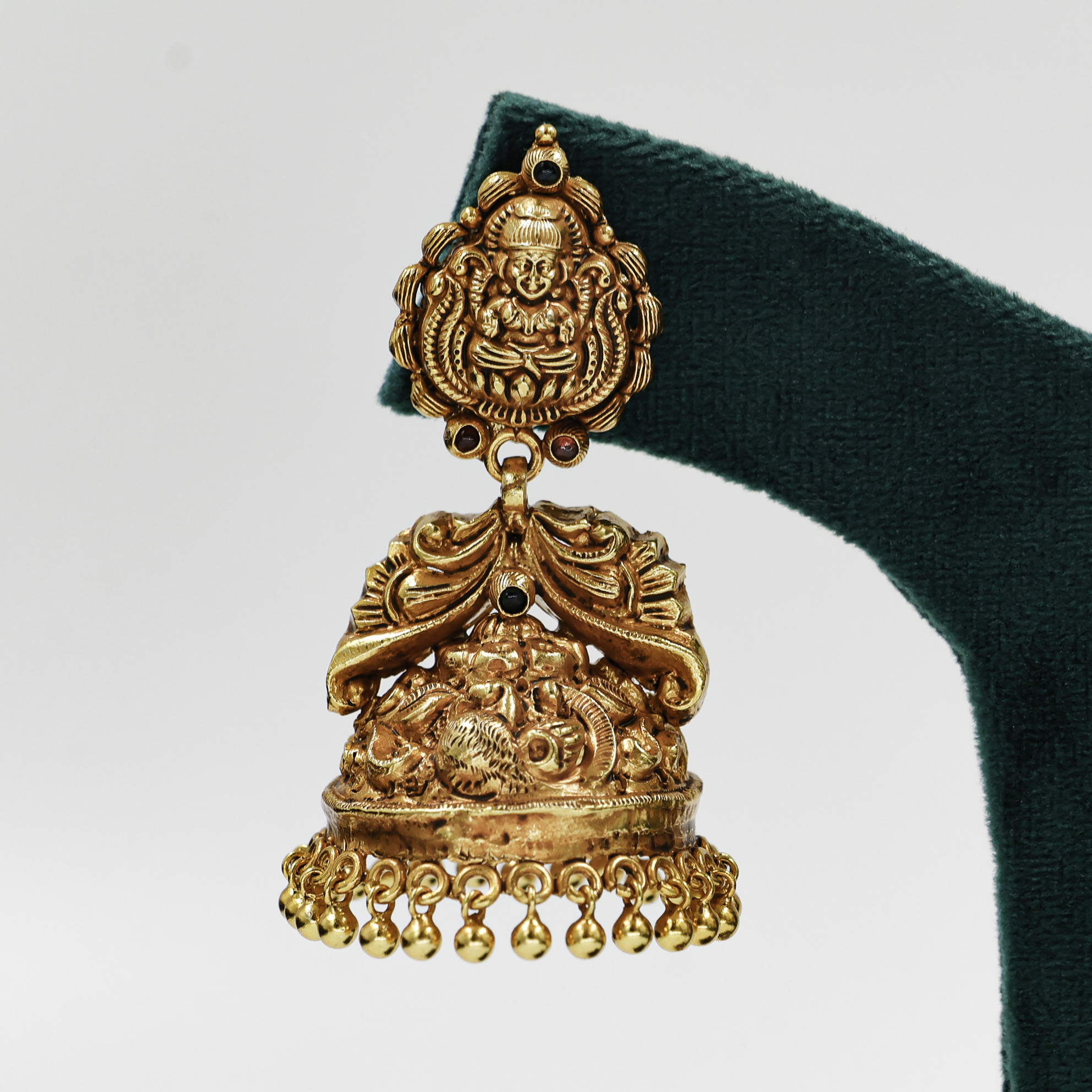Traditional Gold Polished Silver jhumka earrings with intricate detailing, perfect for weddings and festive occasions. Buy Gold Polished Silver Jhumka Earrings from Raag Silver Jewellery in Hyderabad.
