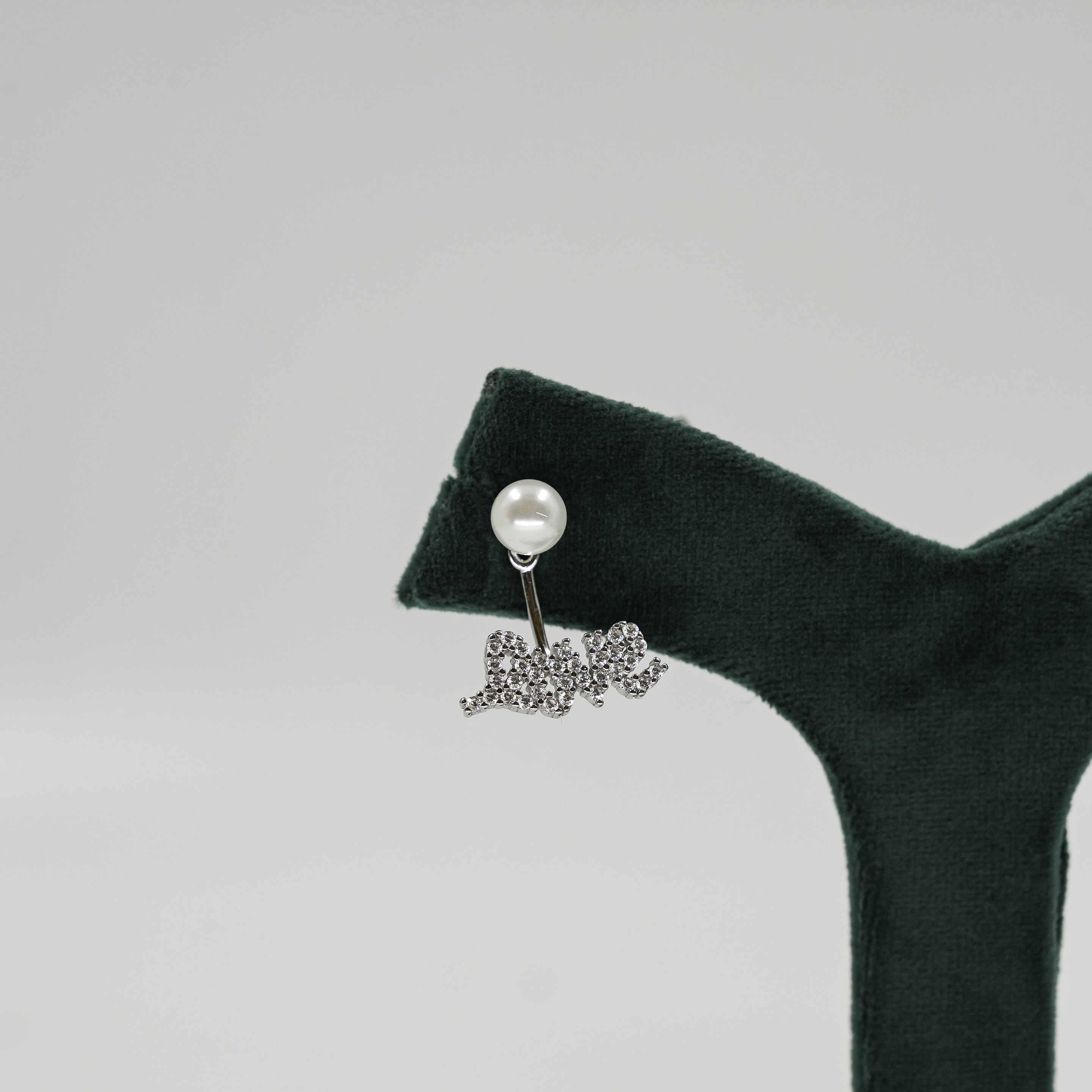 Elegant pearl silver earrings with Love design, perfect for adding a touch of romance to any look. Buy Pearl Silver Earrings from Raag Silver Jewellery in Hyderabad.