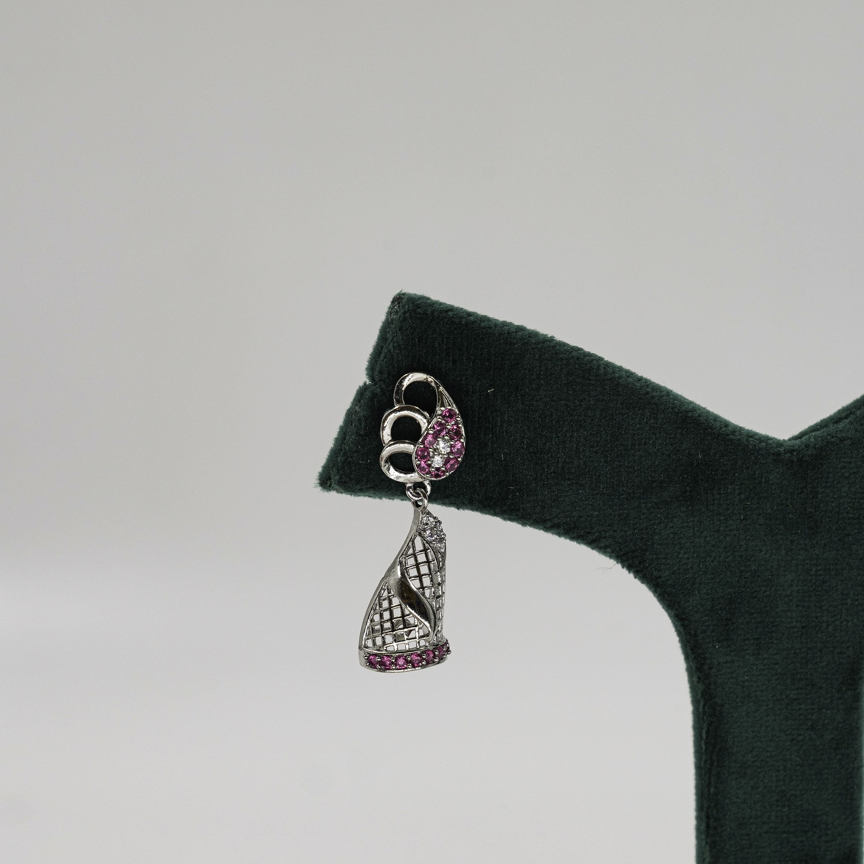 Elegant silver drop earrings with intricate design, perfect for parties and festive occasions. Buy silver drop earrings from Raag Silver Jewellery in Hyderabad.