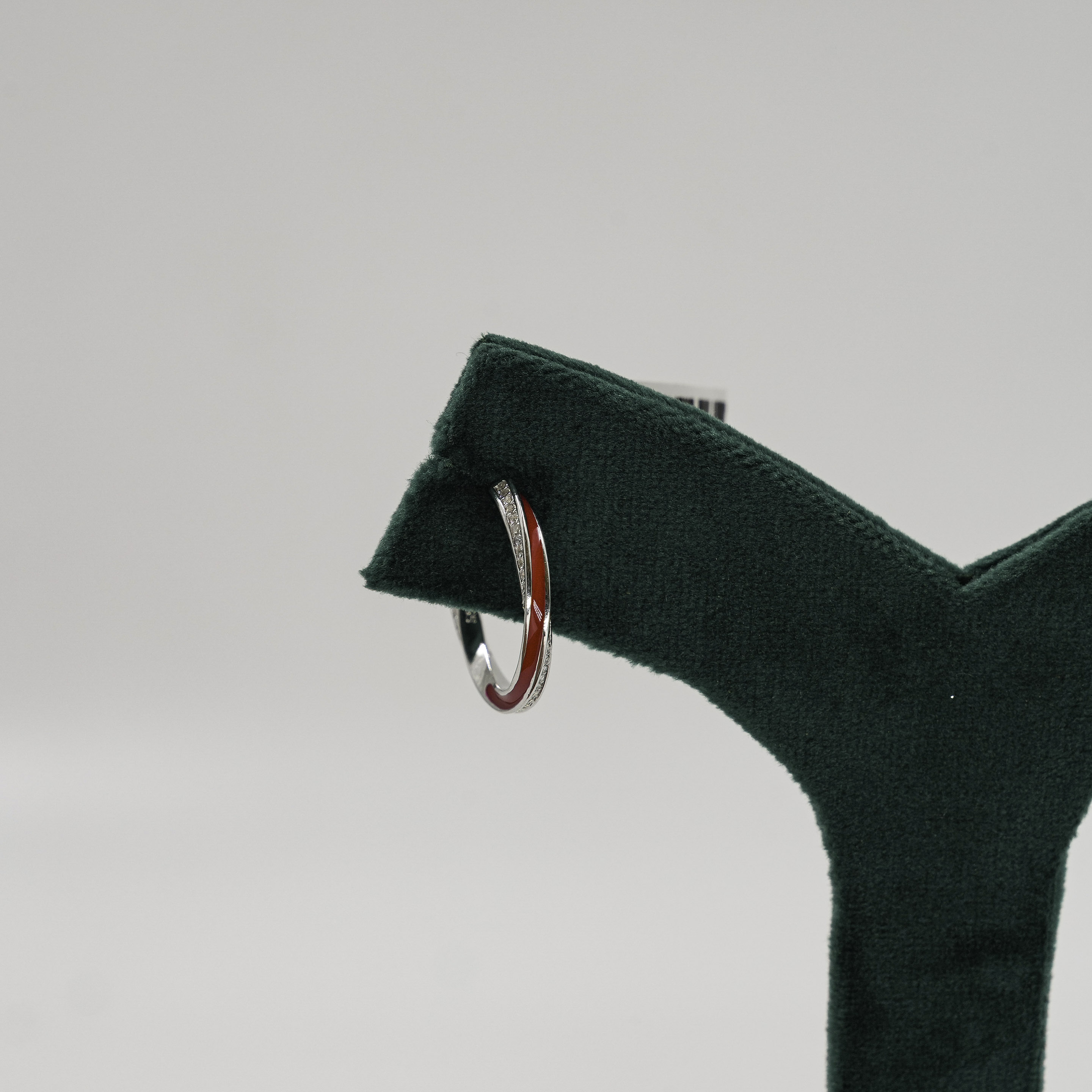 Elegant silver hoop earrings with red enamel accents, a stylish addition to any outfit. Buy silver hoop earrings from Raag Silver Jewellery in Hyderabad.