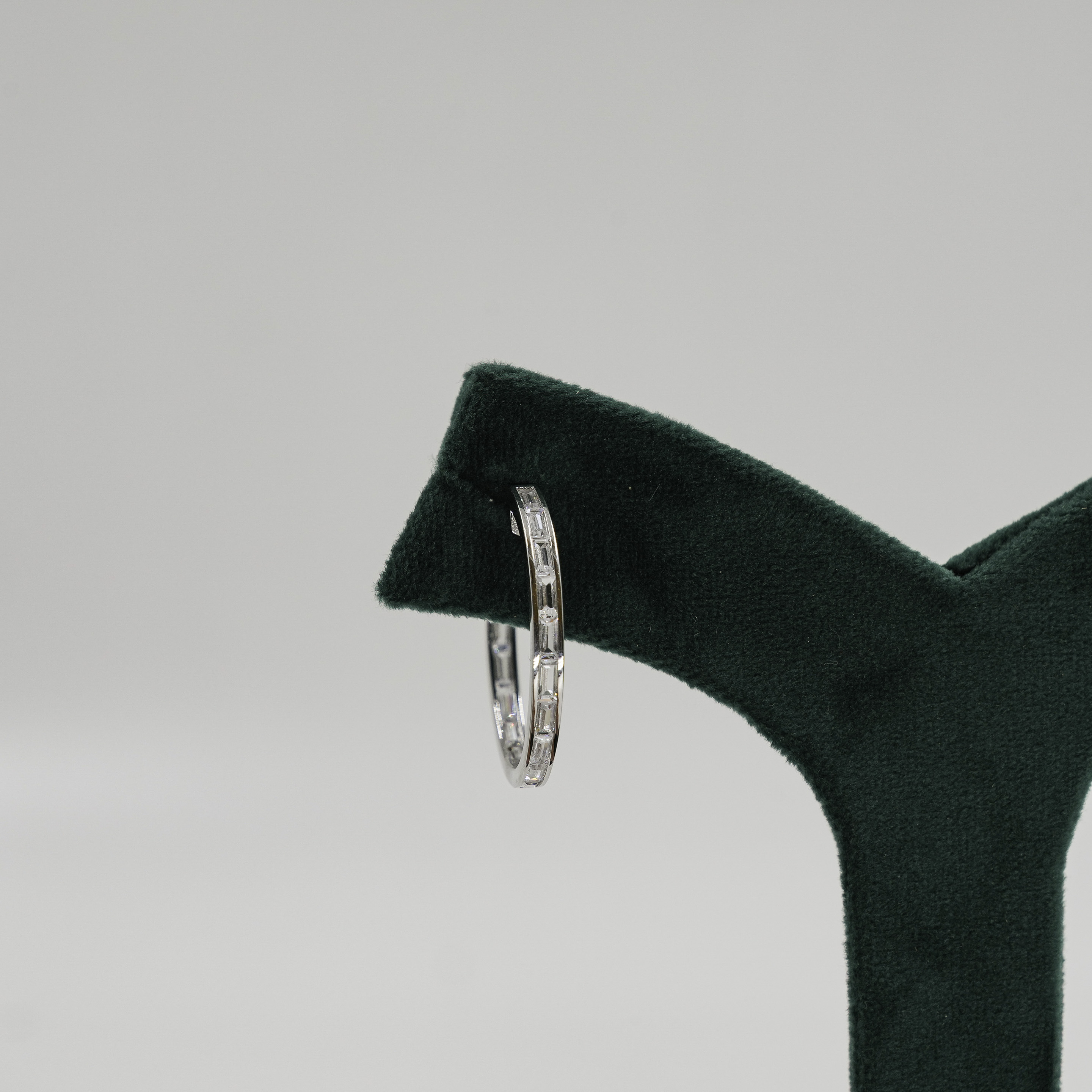 Elegant silver hoop earrings with baguette cut stones, perfect for parties and everyday wear. Buy silver hoop earrings from Raag Silver Jewellery in Hyderabad.