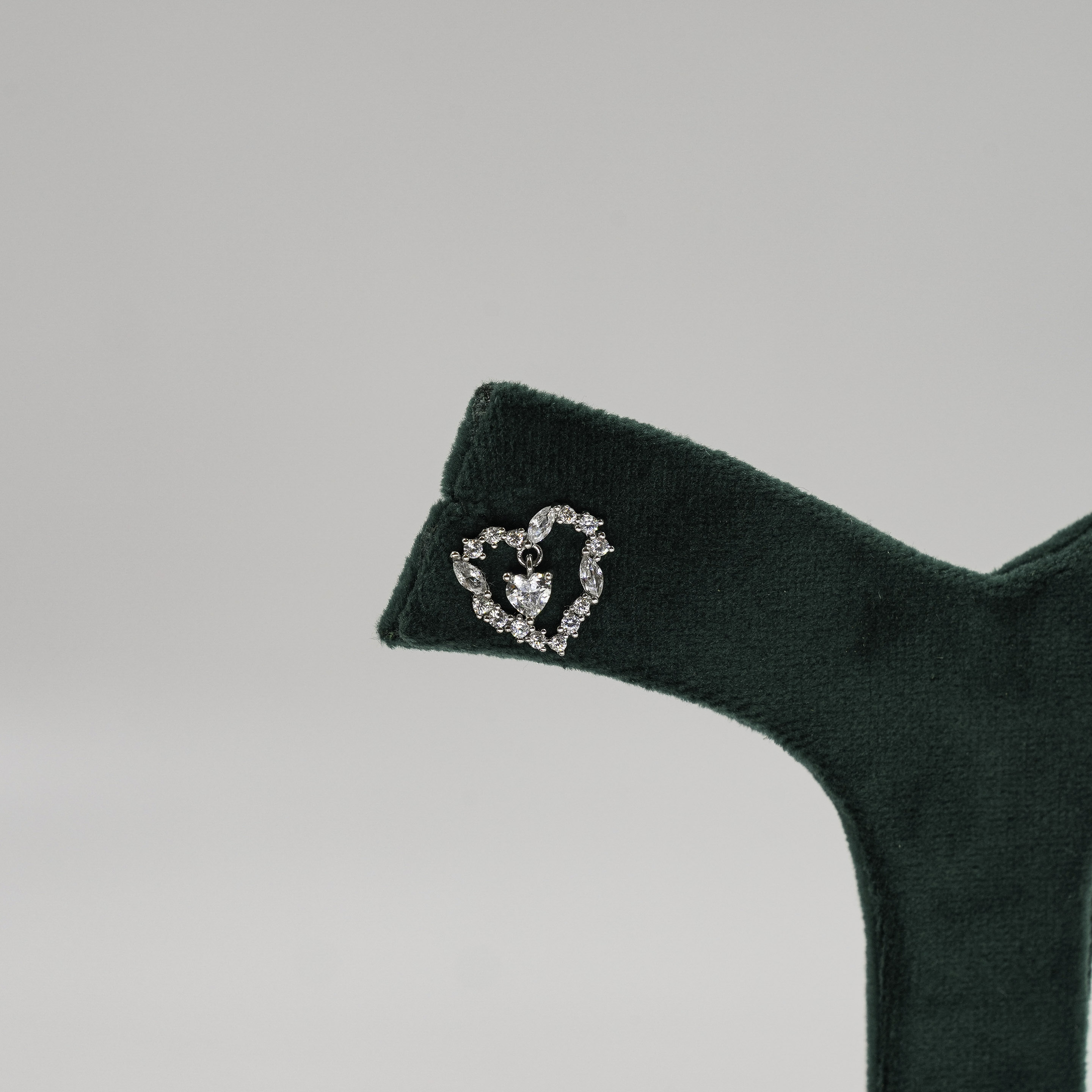 Dazzling silver heart earrings with sparkling stones, perfect for adding a touch of love. Buy Silver Heart Earrings from Raag Silver Jewellery in Hyderabad.