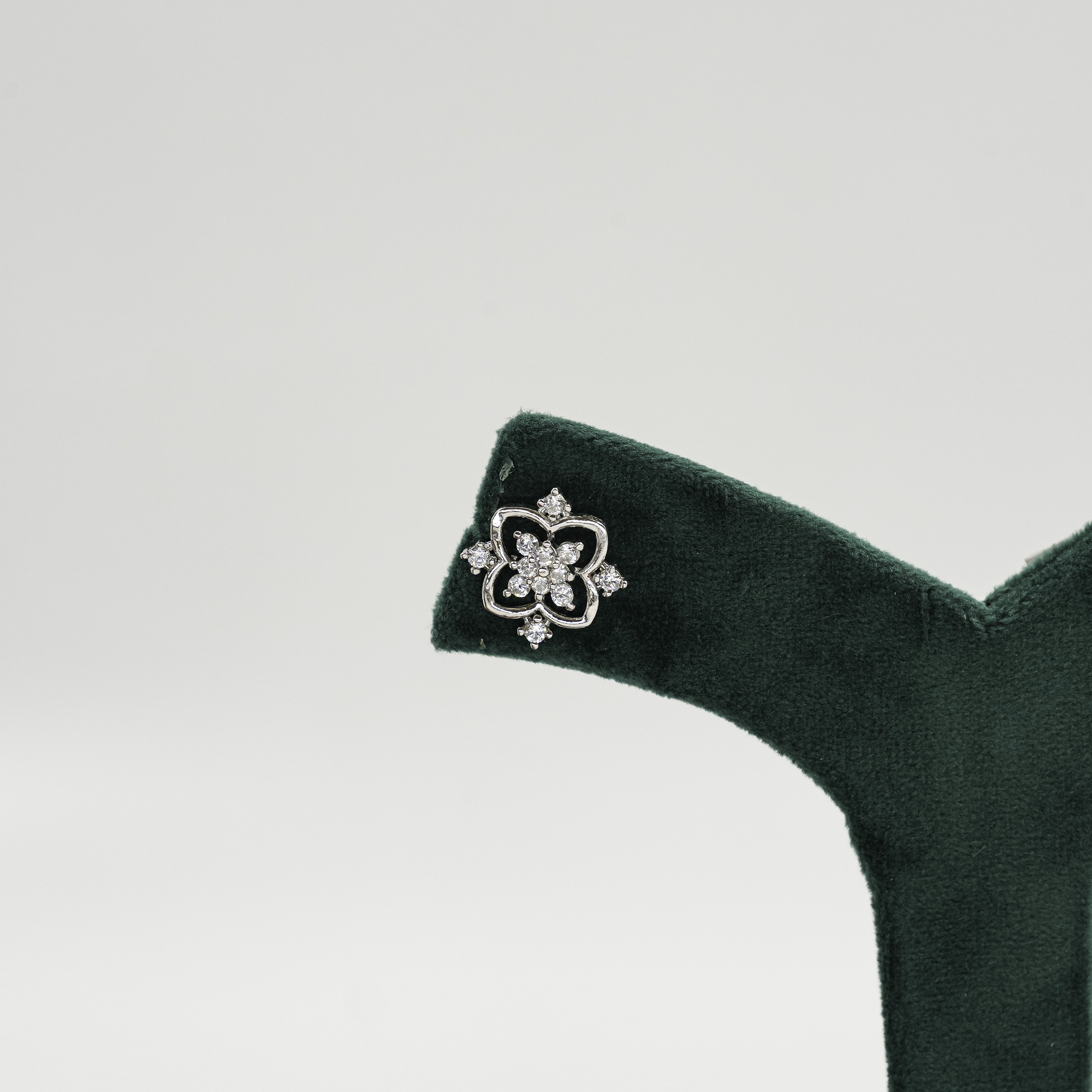 Elegant flower stud earrings with intricate detailing, perfect for daily wear and special occasions. Buy Flower Stud Earrings from Raag Silver Jewellery in Hyderabad.