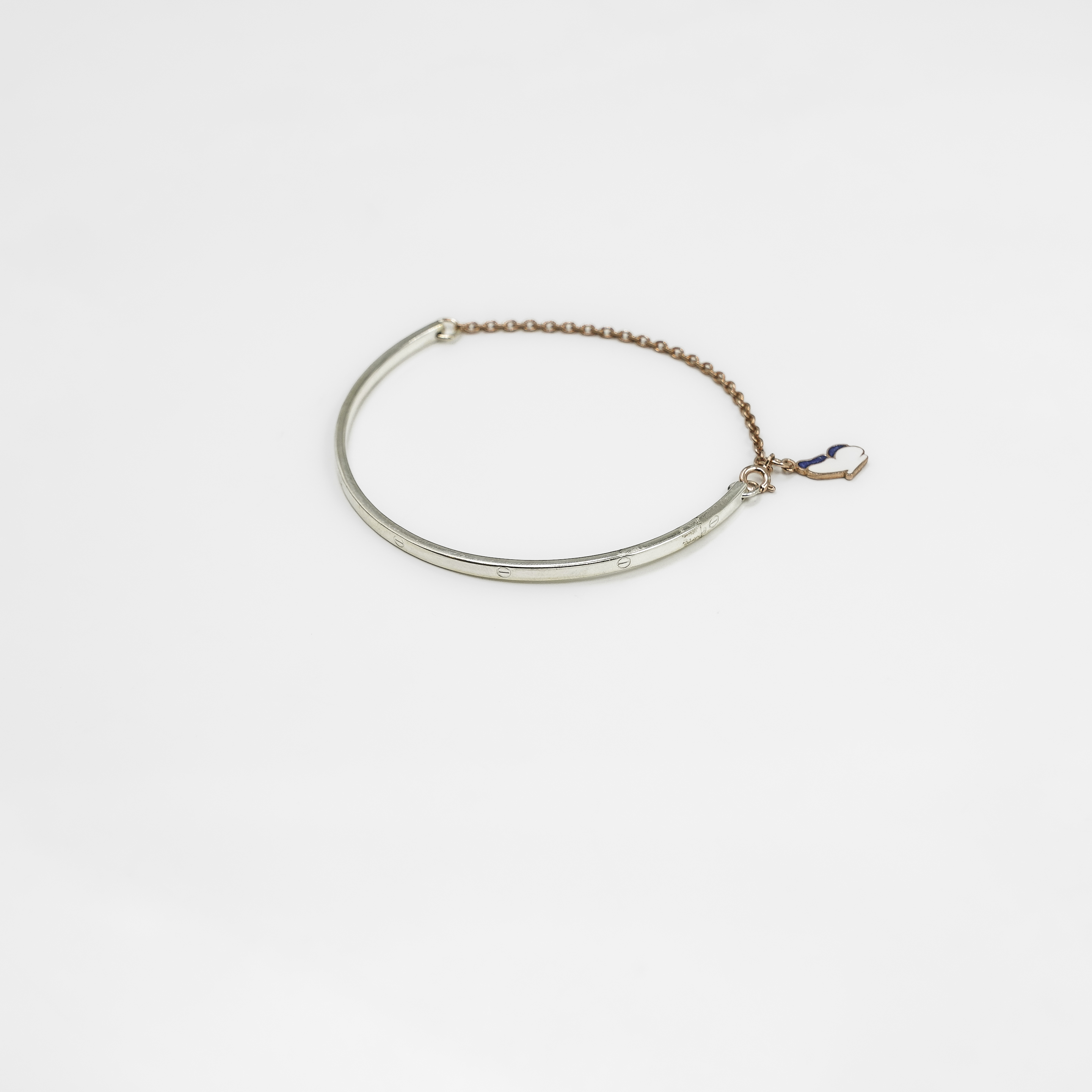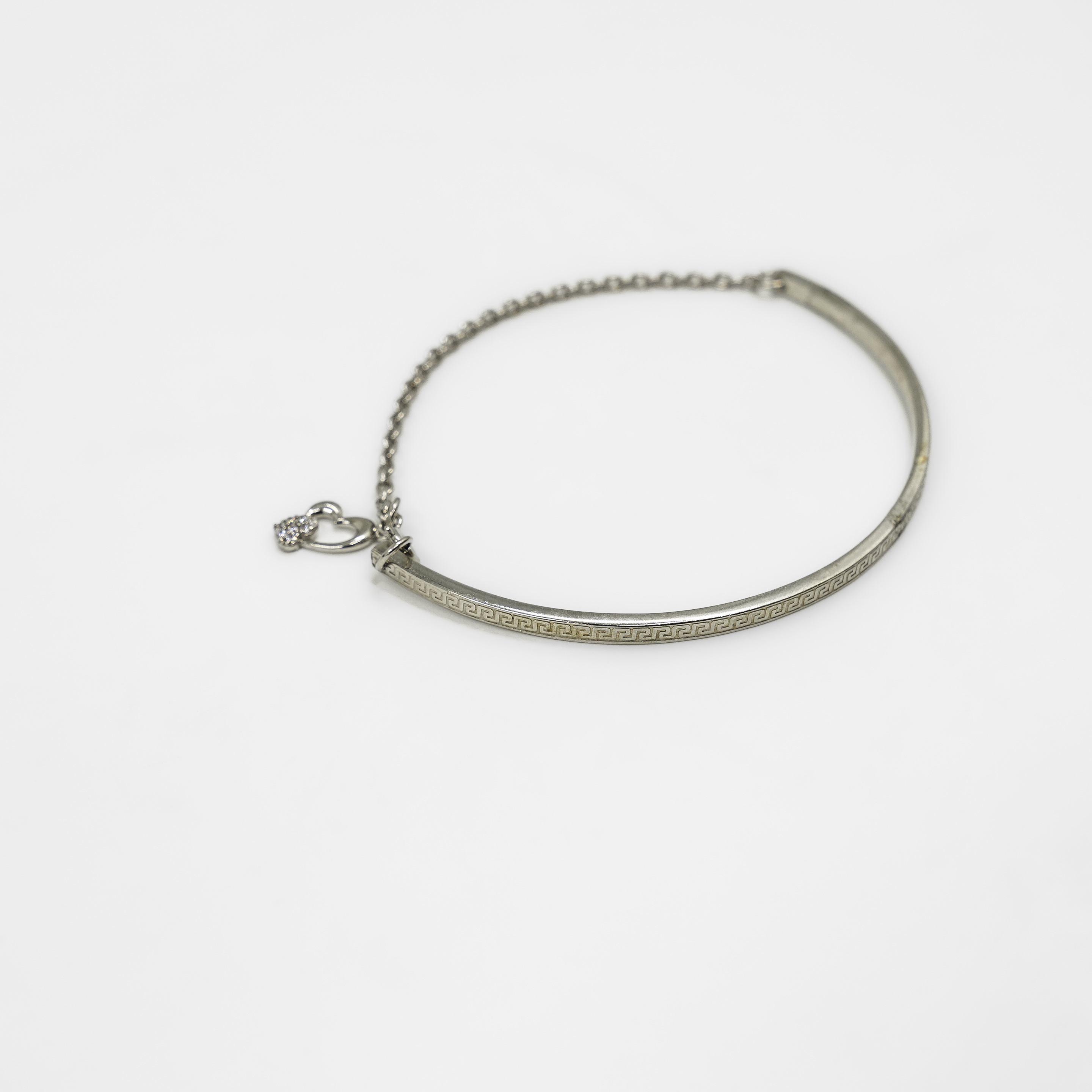 Elegant silver bangle bracelet with heart charm, perfect for everyday wear or special occasions. Buy silver bangle bracelet from Raag Silver Jewellery in Hyderabad.