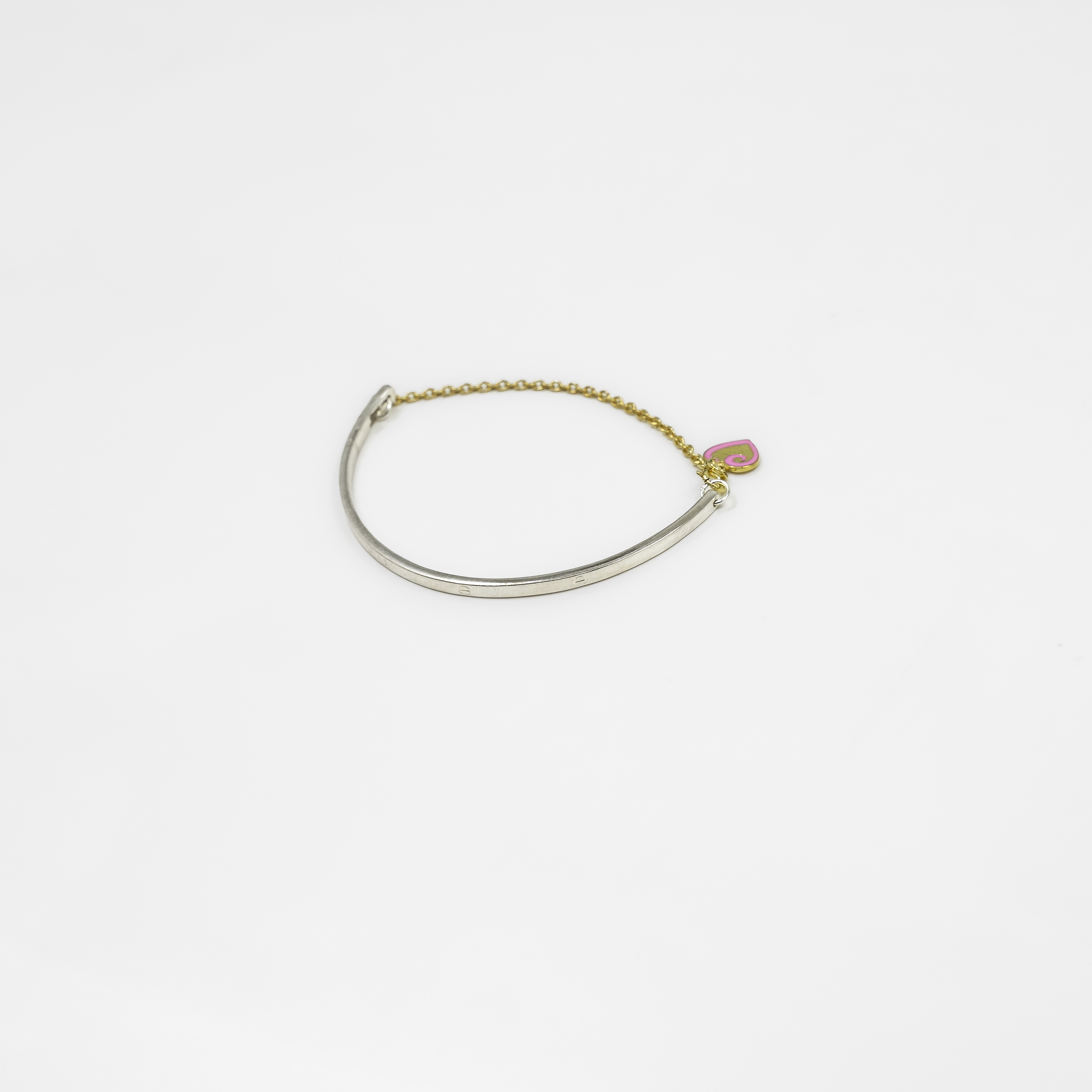Sleek silver bangle bracelet with pink charm, perfect for everyday wear and gifting. Buy silver bangle bracelet from Raag Silver Jewellery in Hyderabad.