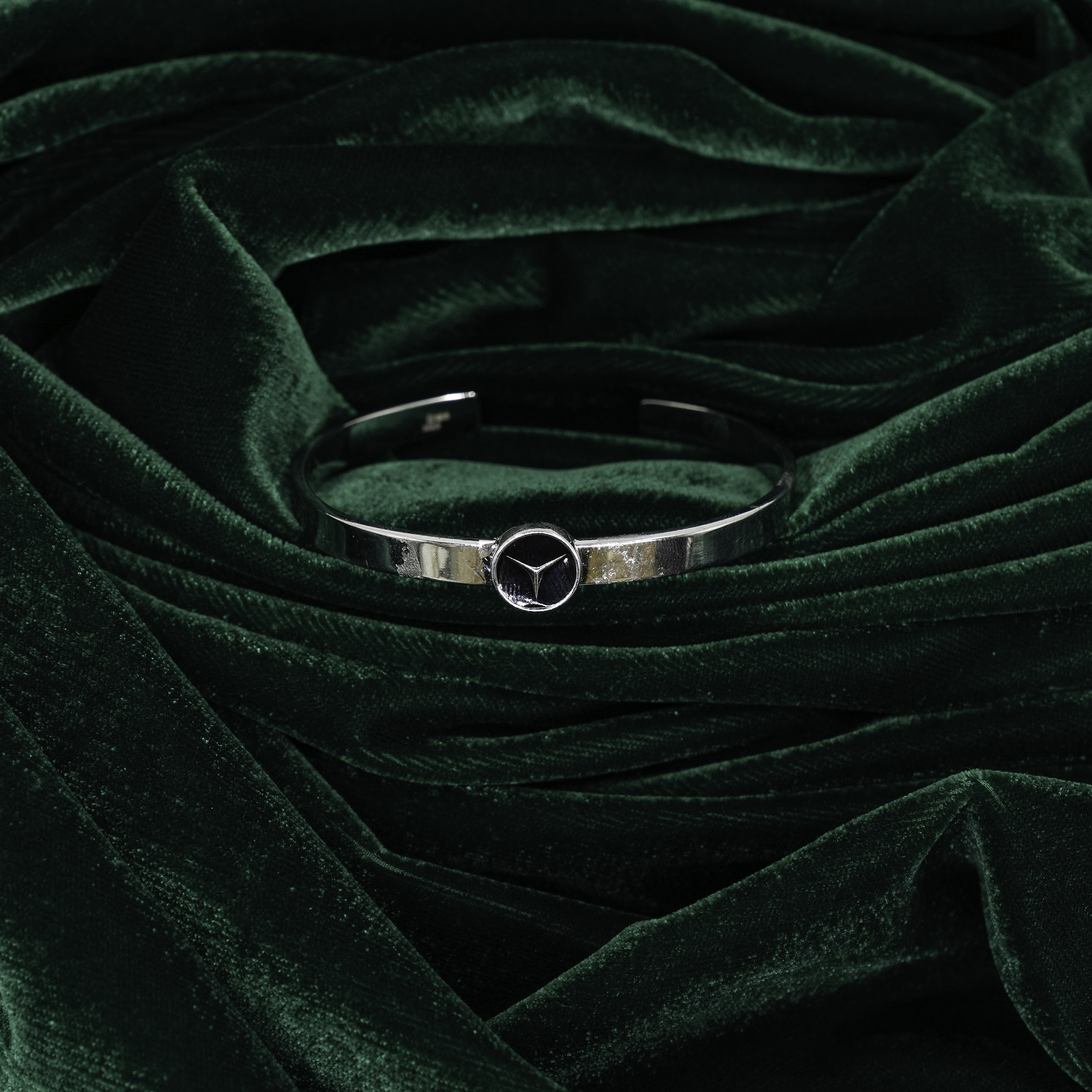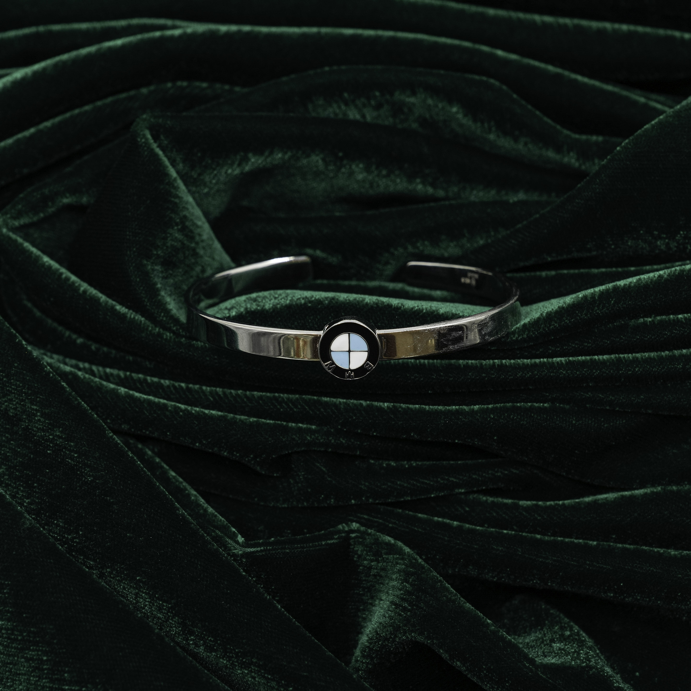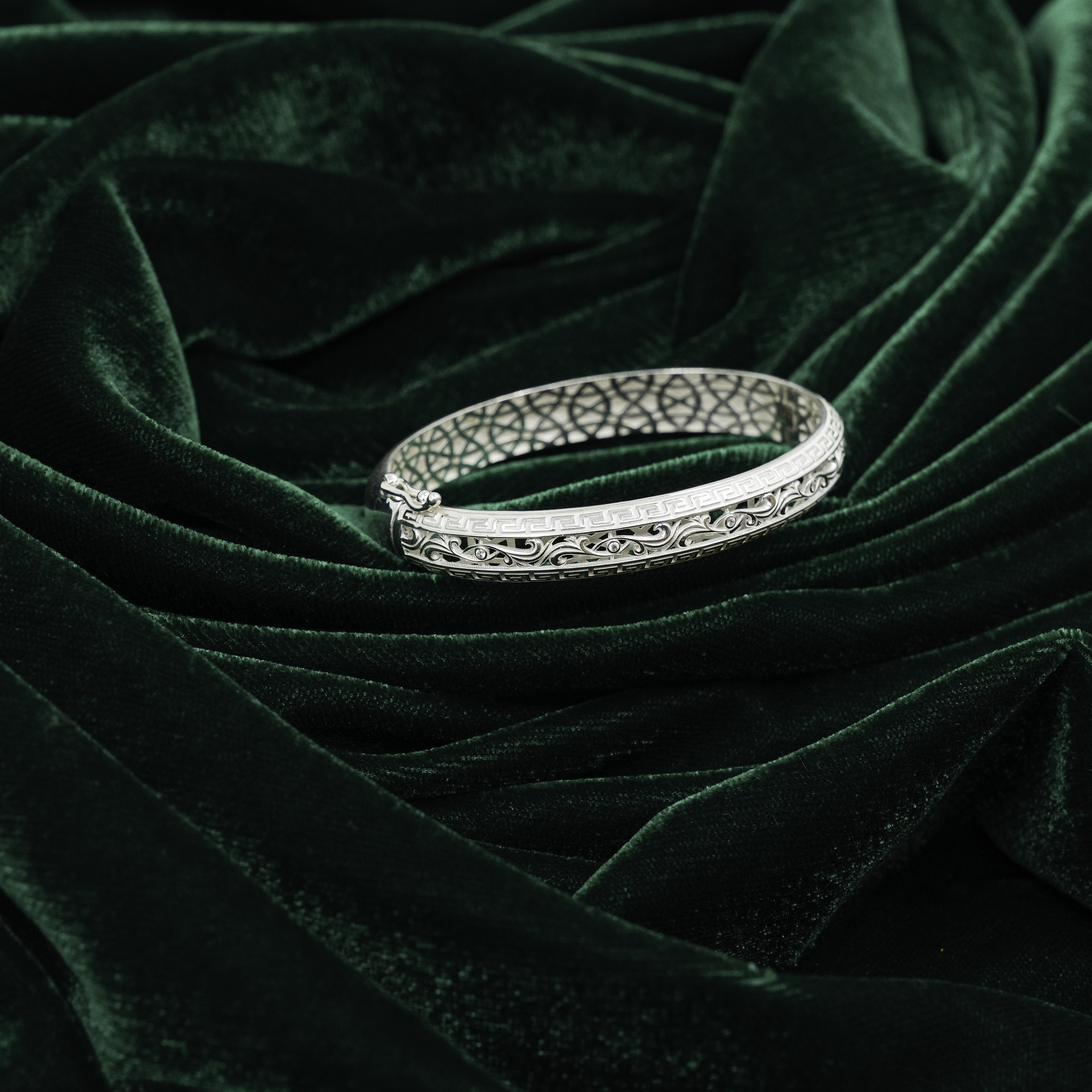 Elegant sterling silver bangle bracelet with black stones, perfect for parties and gifting. Buy silver bangle bracelet from Raag Silver Jewellery in Hyderabad.