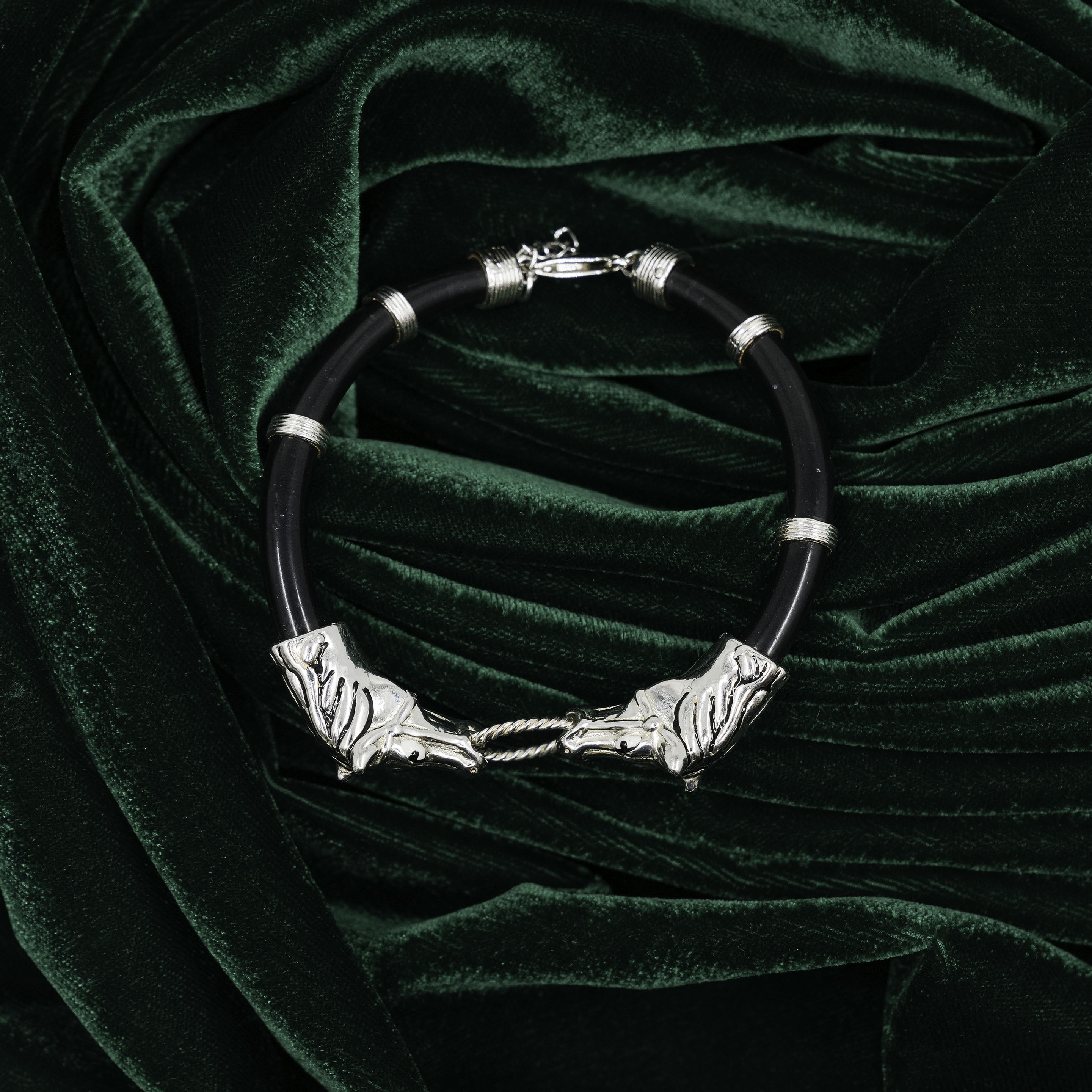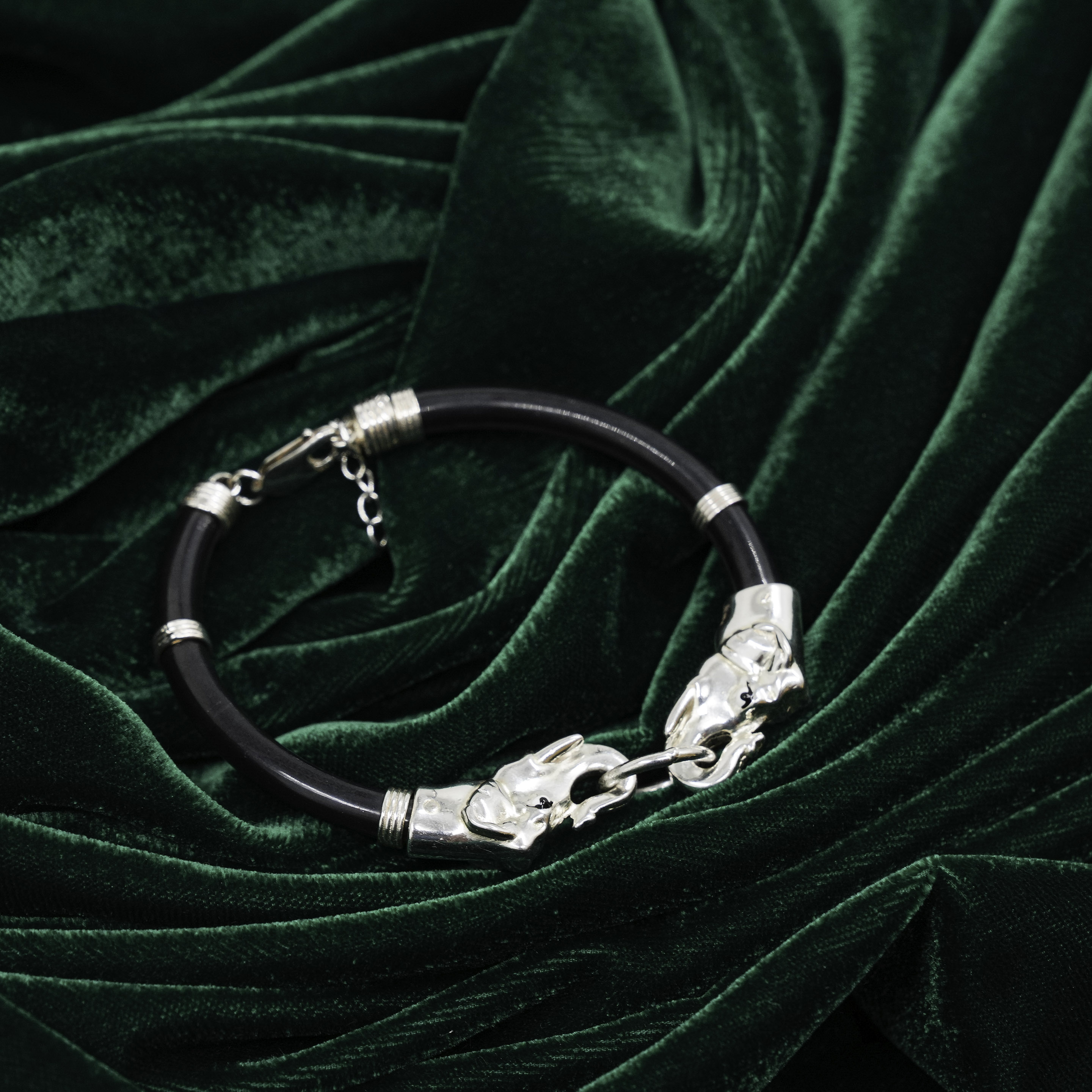 Bold silver lion head bracelet, a statement piece with intricate details and secure clasp. Buy Silver Lion Bracelet from Raag Silver Jewellery in Hyderabad.
