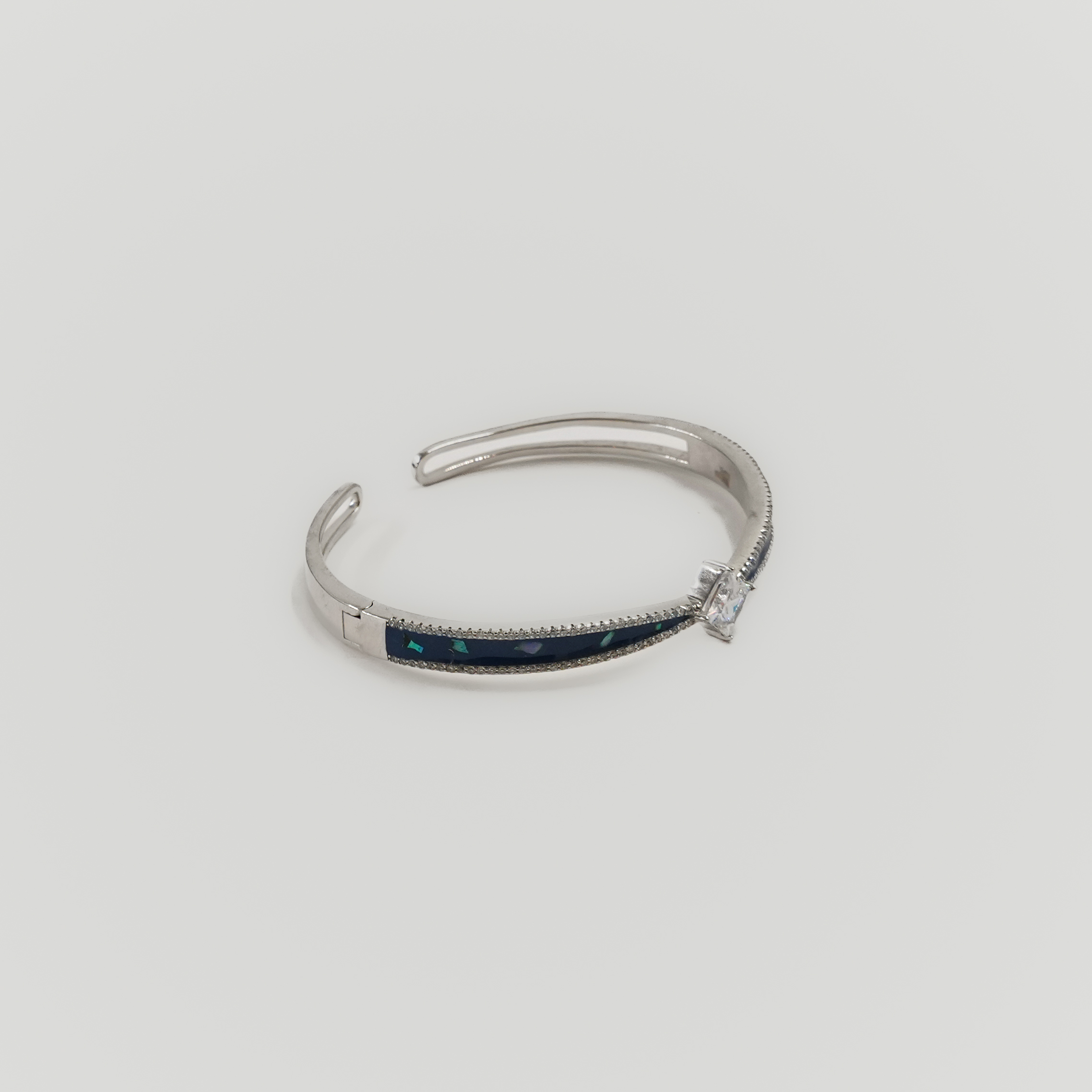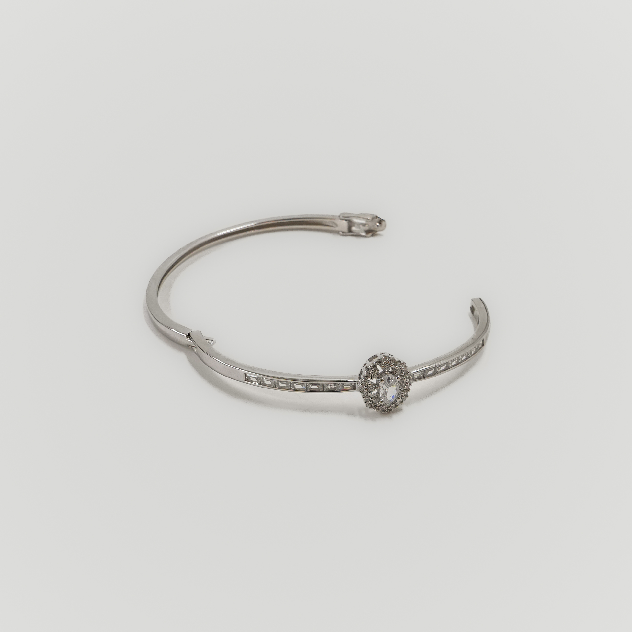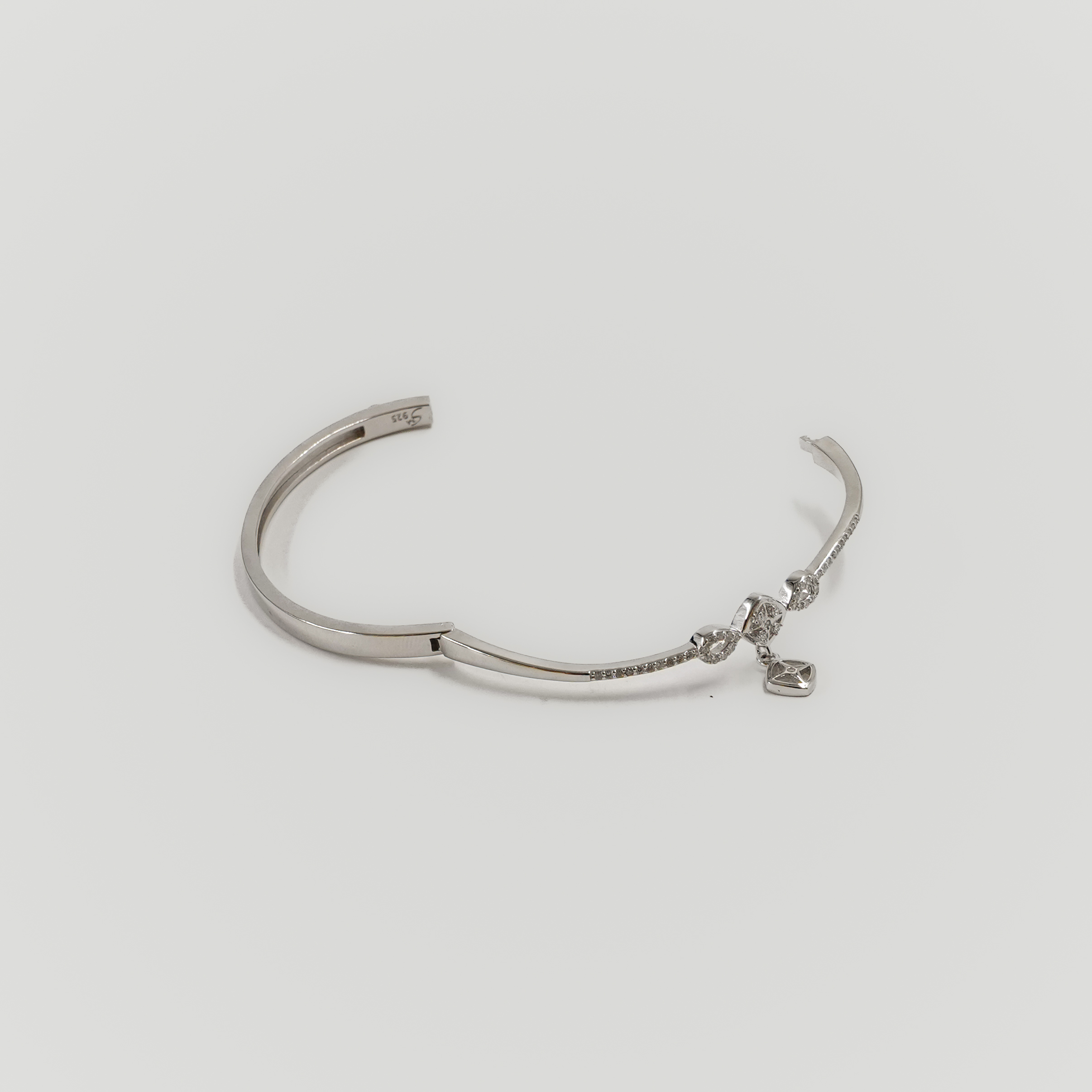 Elegant silver Kada with diamond accents, perfect for adding a touch of sparkle to any outfit. Buy diamond silver Kada from Raag Silver Jewellery in Hyderabad.