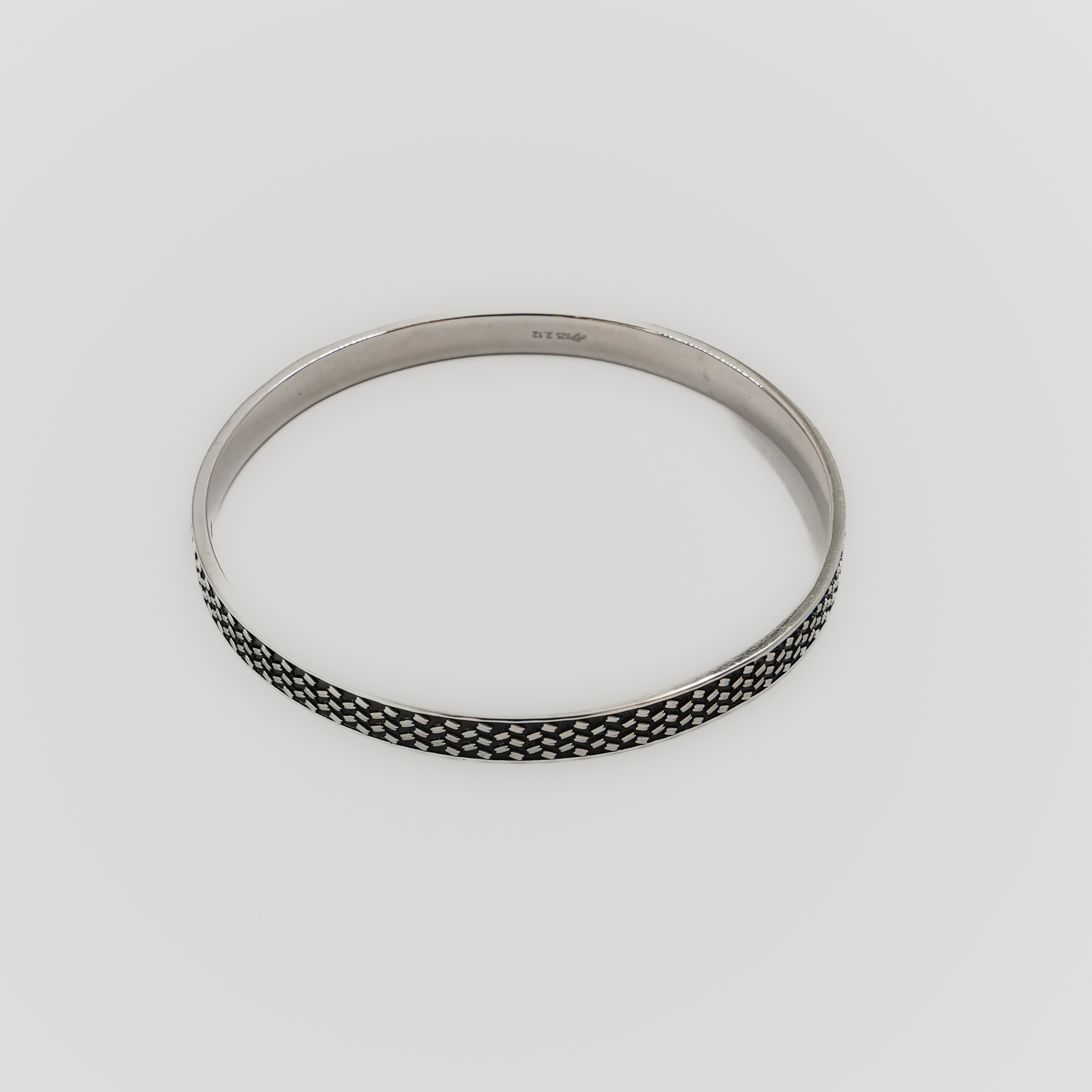 Sterling silver Kada with intricate pattern design, perfect for everyday wear or special occasions. Buy silver pattern Kada from Raag Silver Jewellery in Hyderabad.