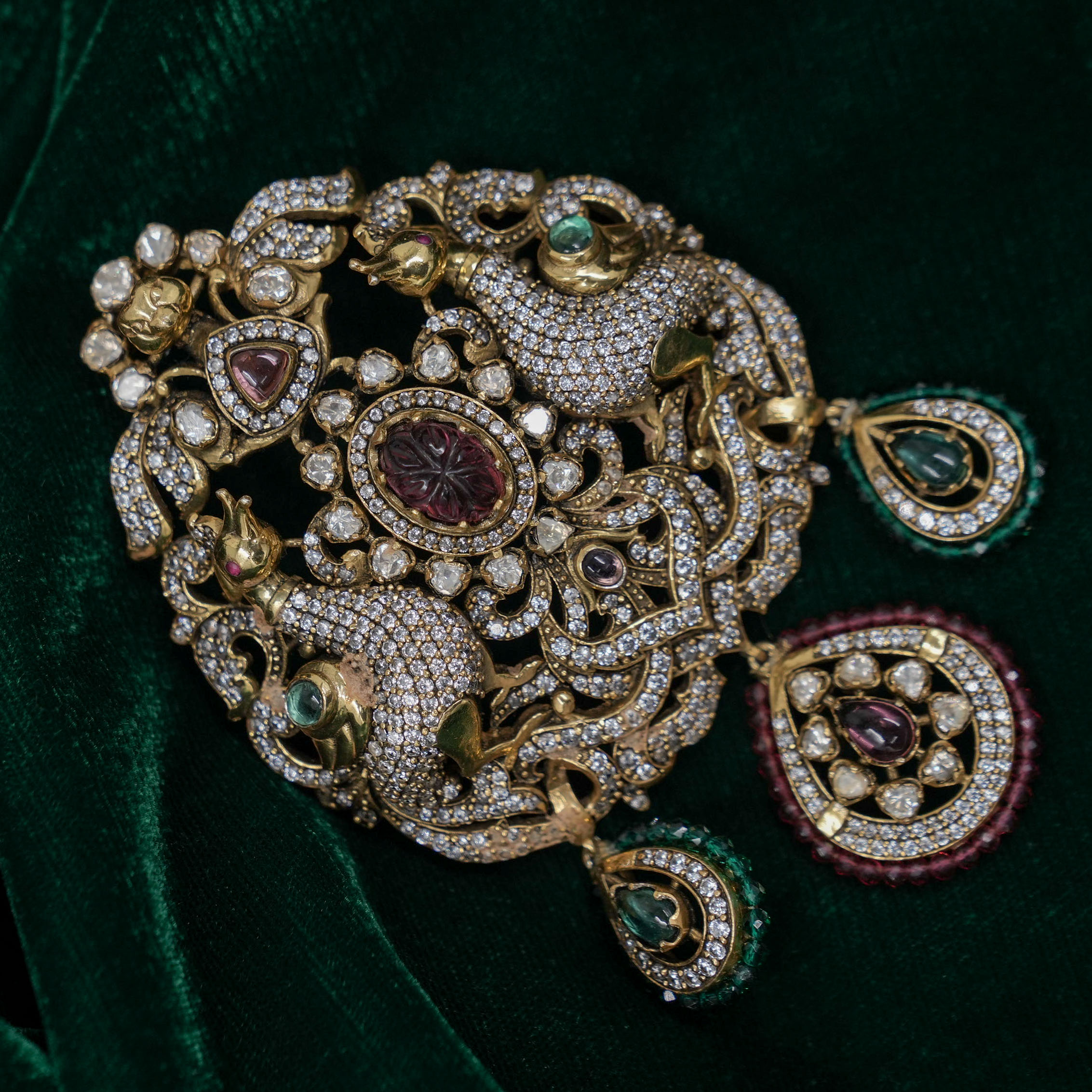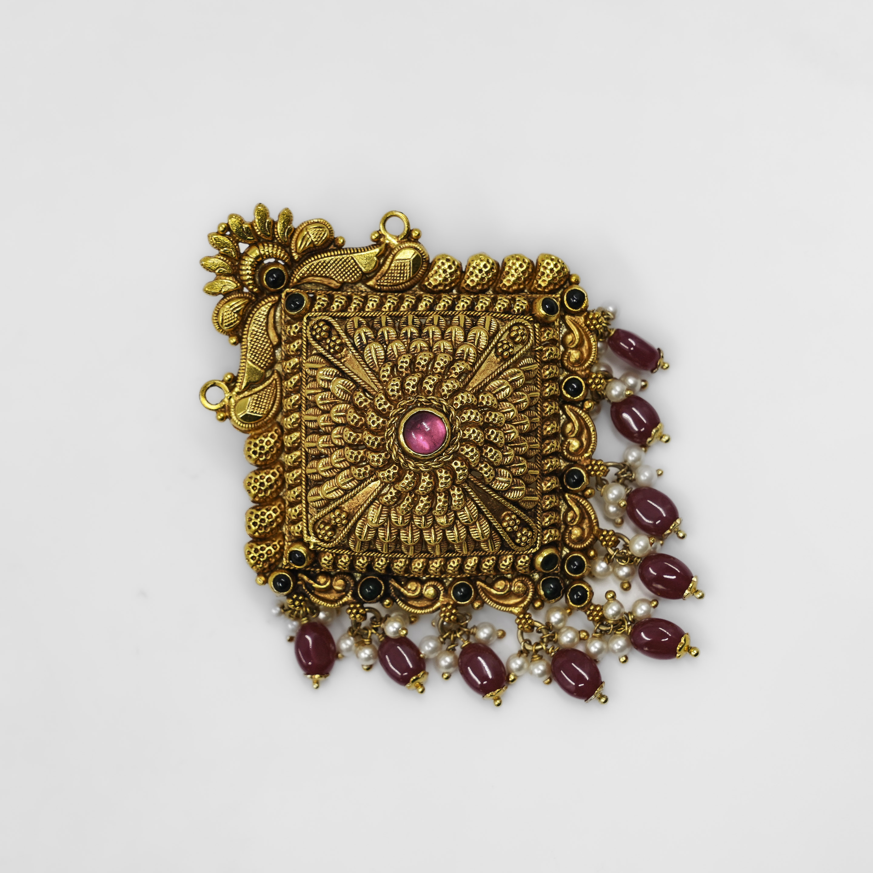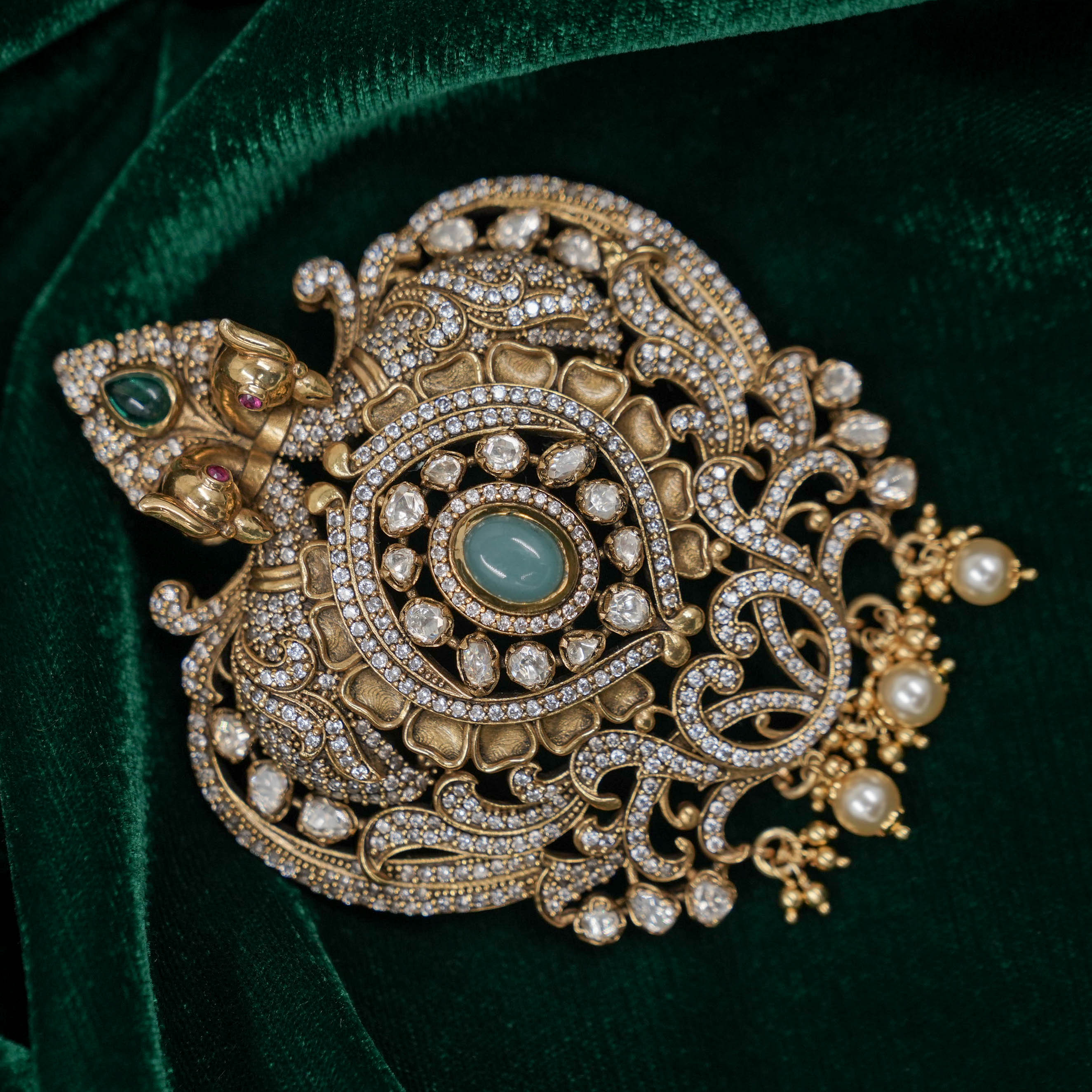 Ornate Gold Polished Silver Ganesha pendant with intricate details, perfect for religious occasions. Buy Gold Polished Silver Ganesha Pendant from Raag Silver Jewellery in Hyderabad.
