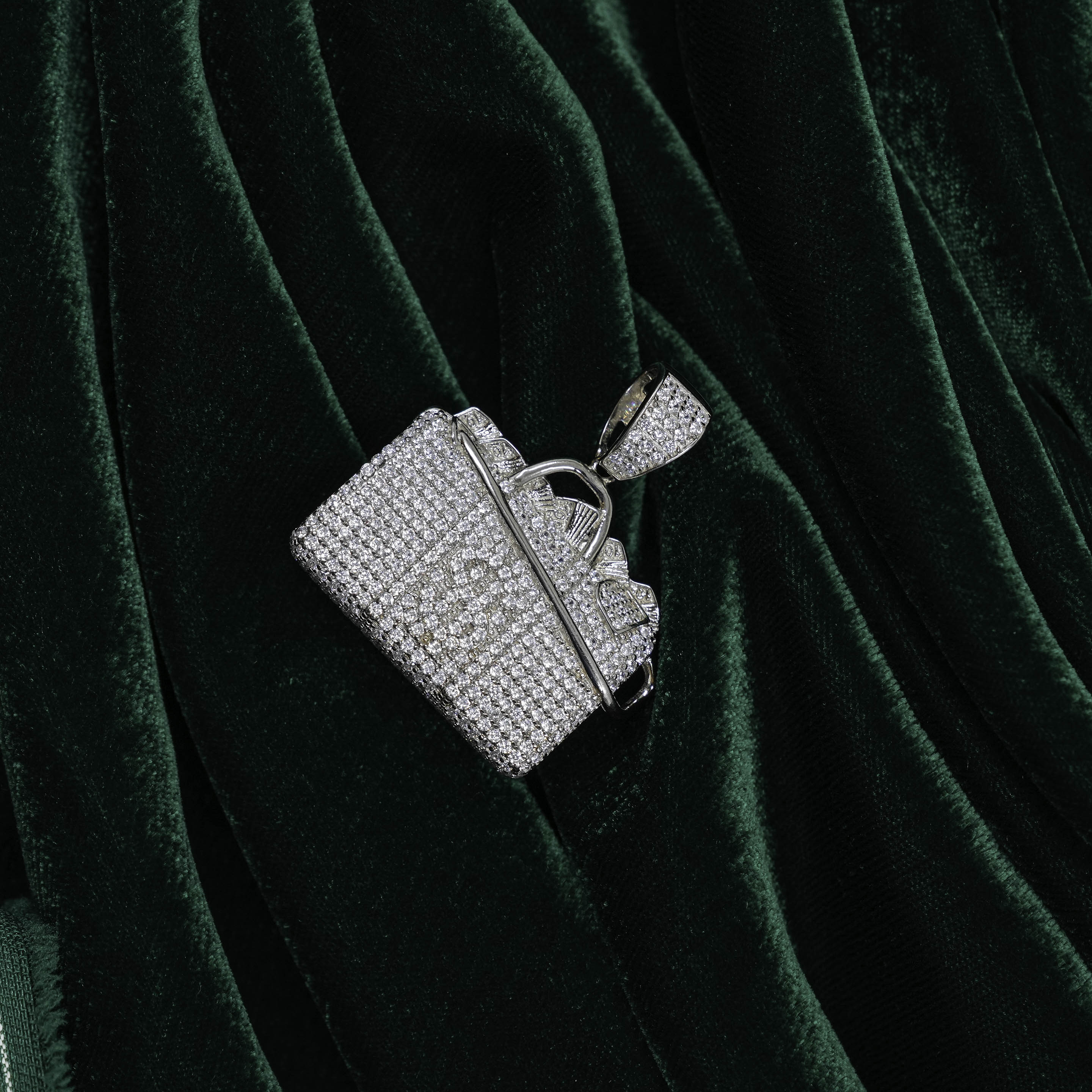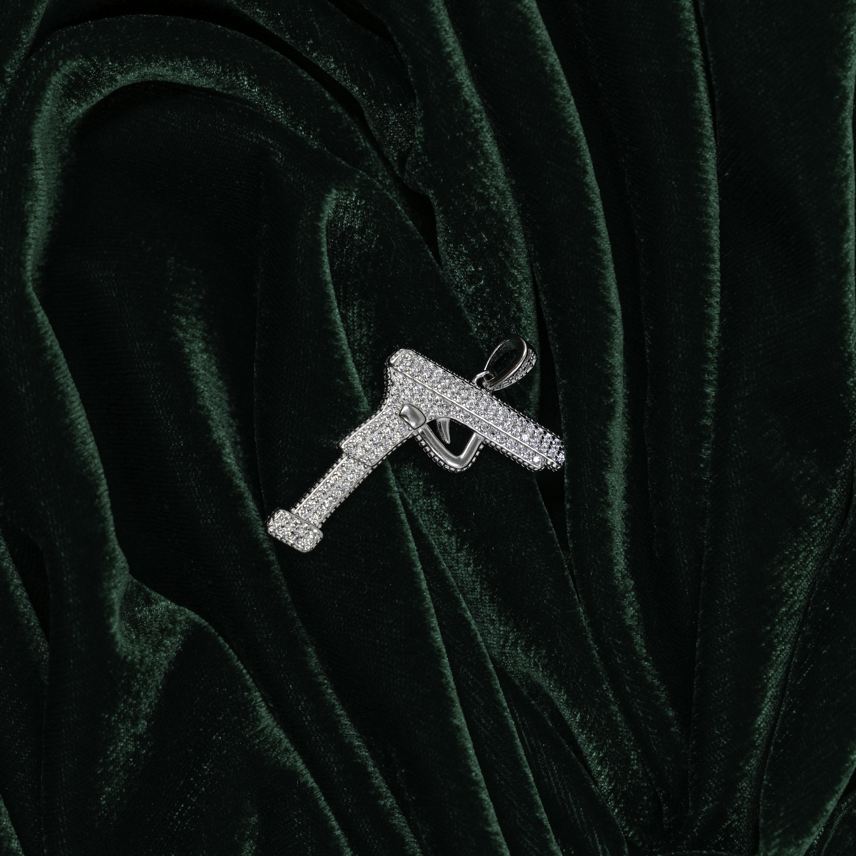 Silver Gun Shaped Pendant Necklace Iced Out Silver Jewellery