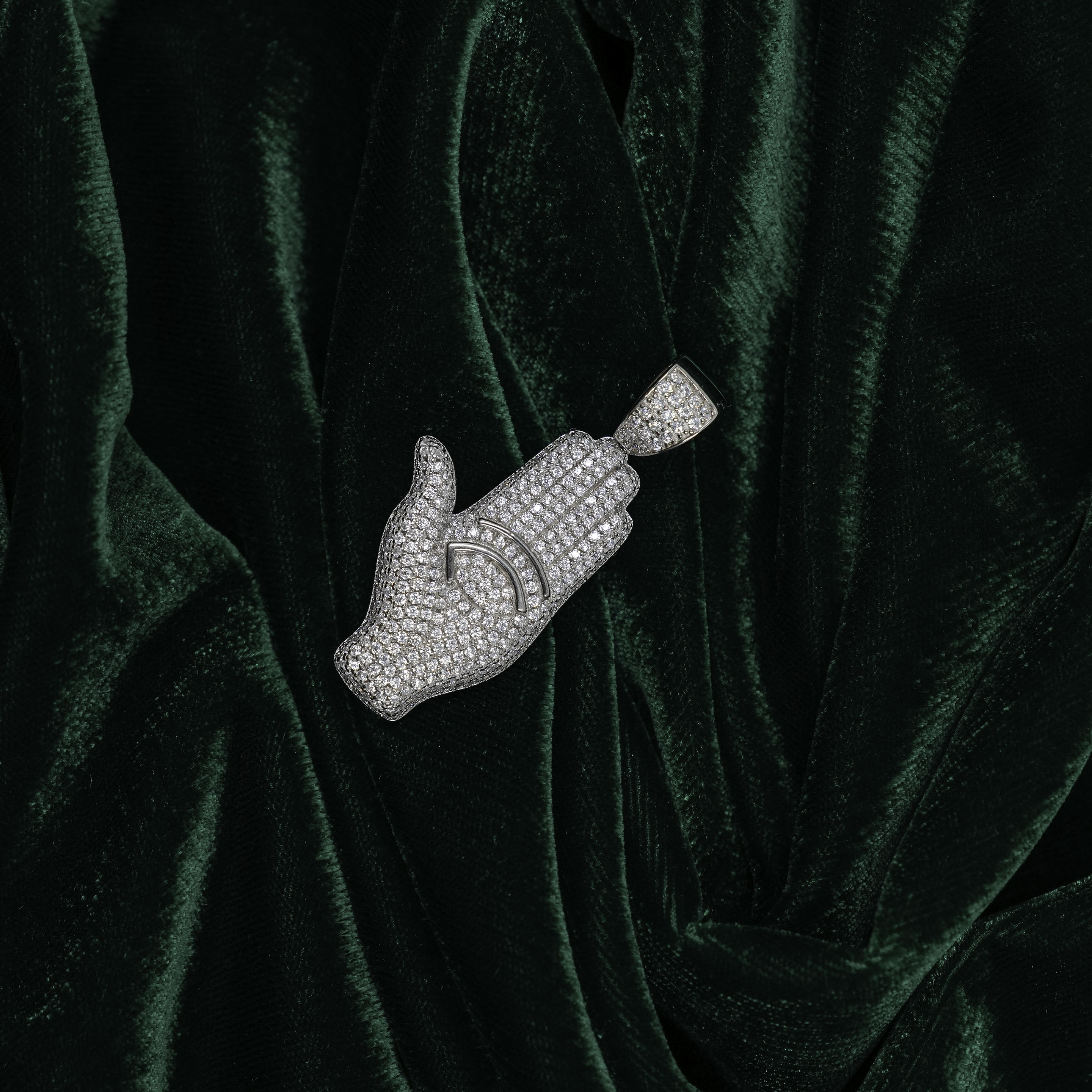 Elegant Sterling Silver Hand Design Pendant With Cubic Zirconia