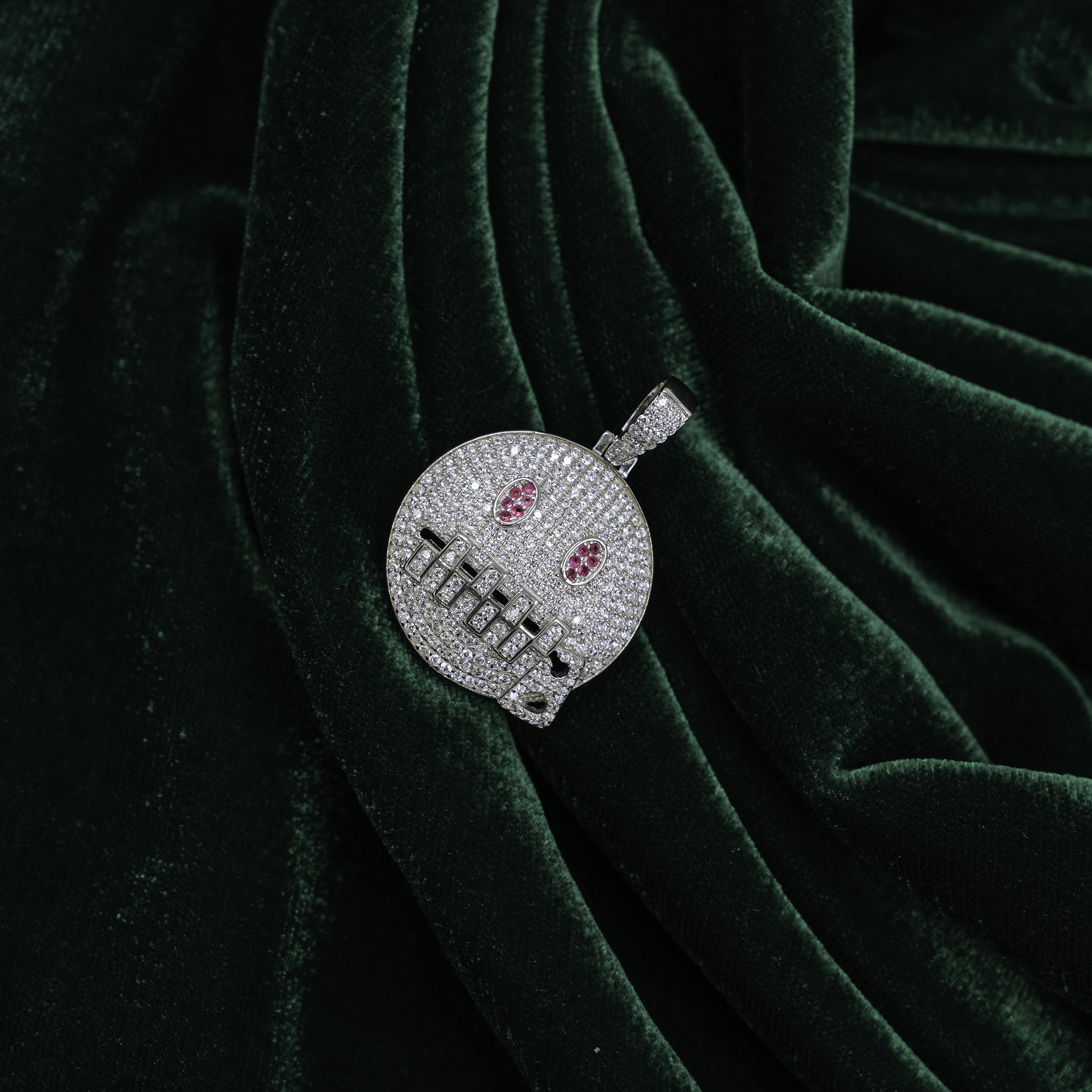 Elegant Silver Skull Design Pendant With Purple Embellishments