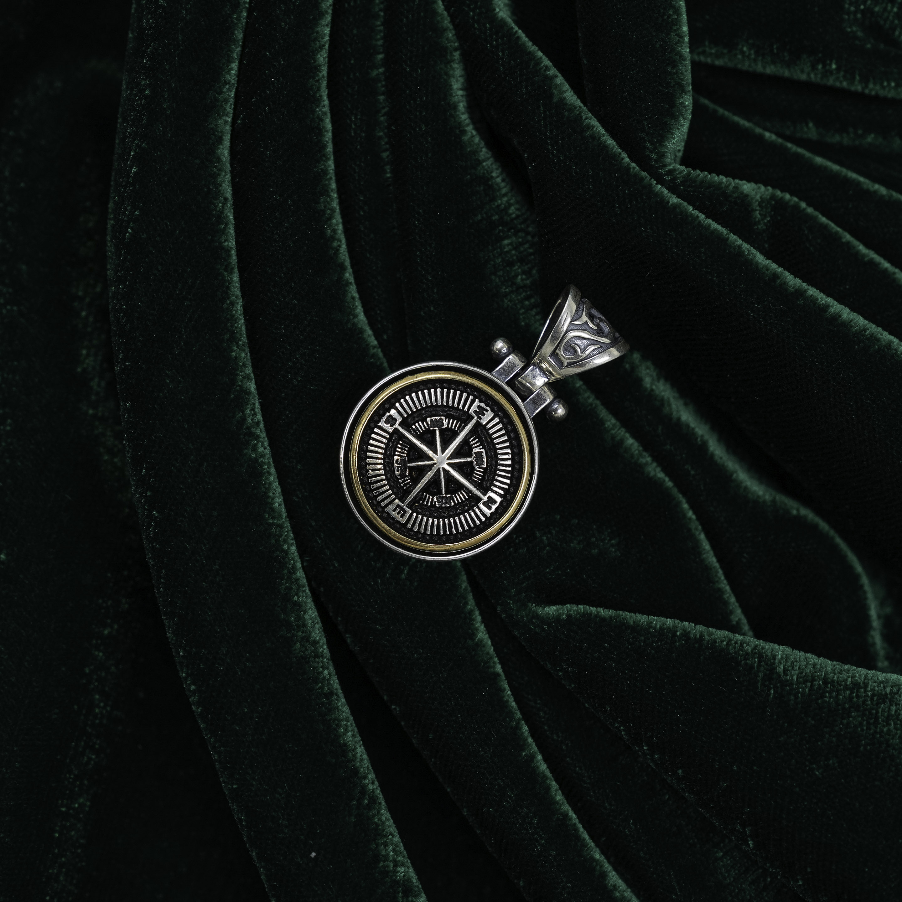 Silver Compass Style Pendant Necklace Silver And Gold Polished Silver Unisex