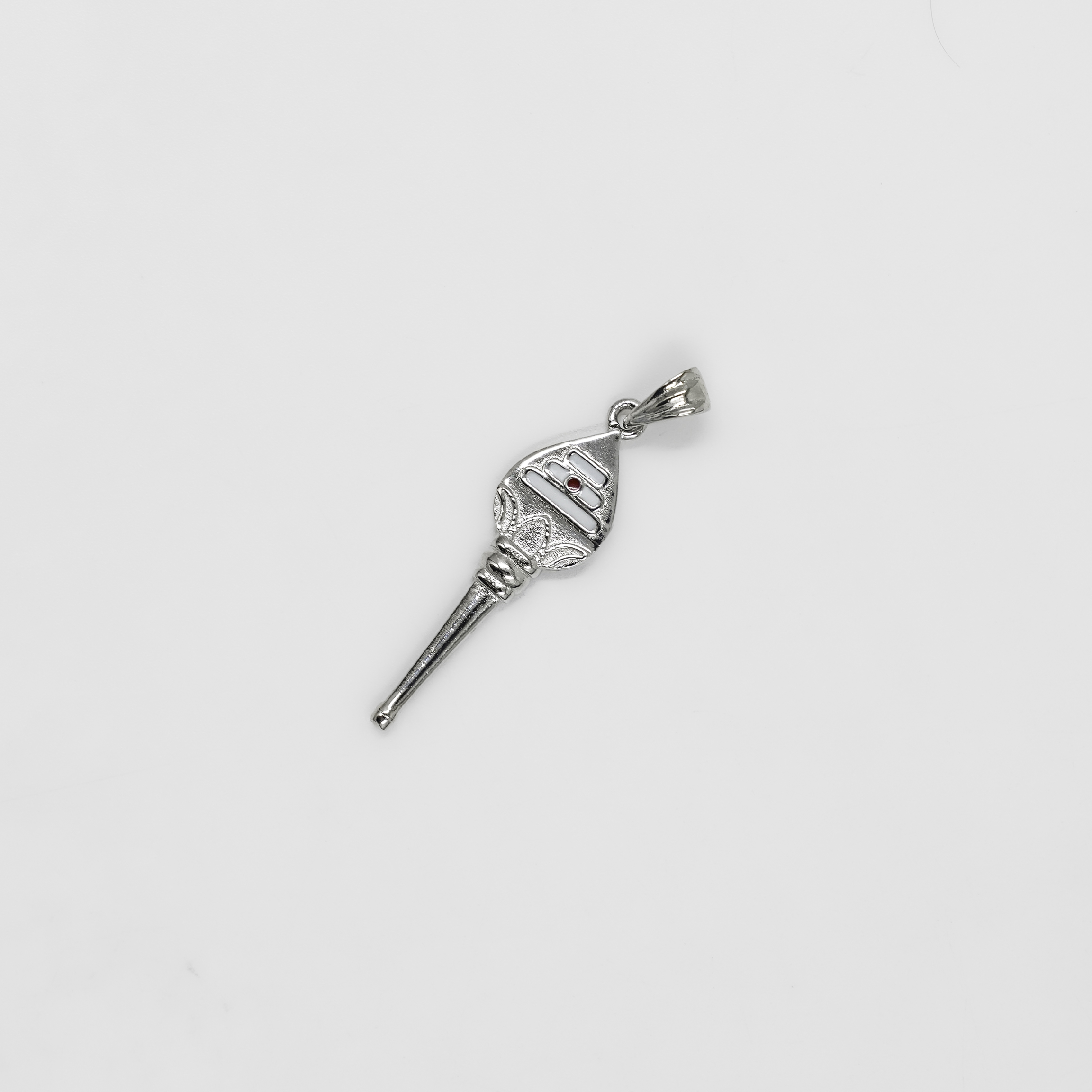 Silver Finish Religious Trishul Pendant with Red Stone Accent