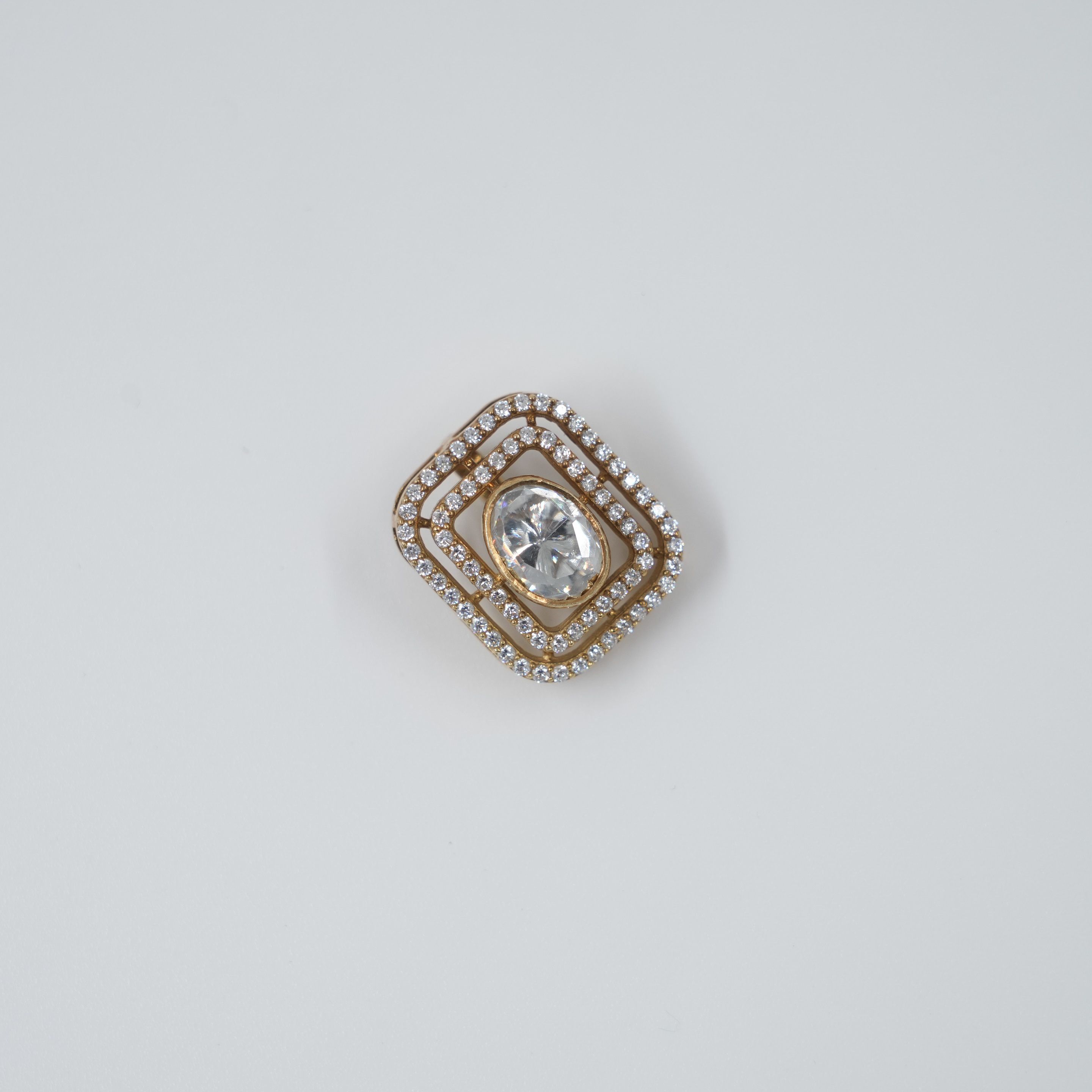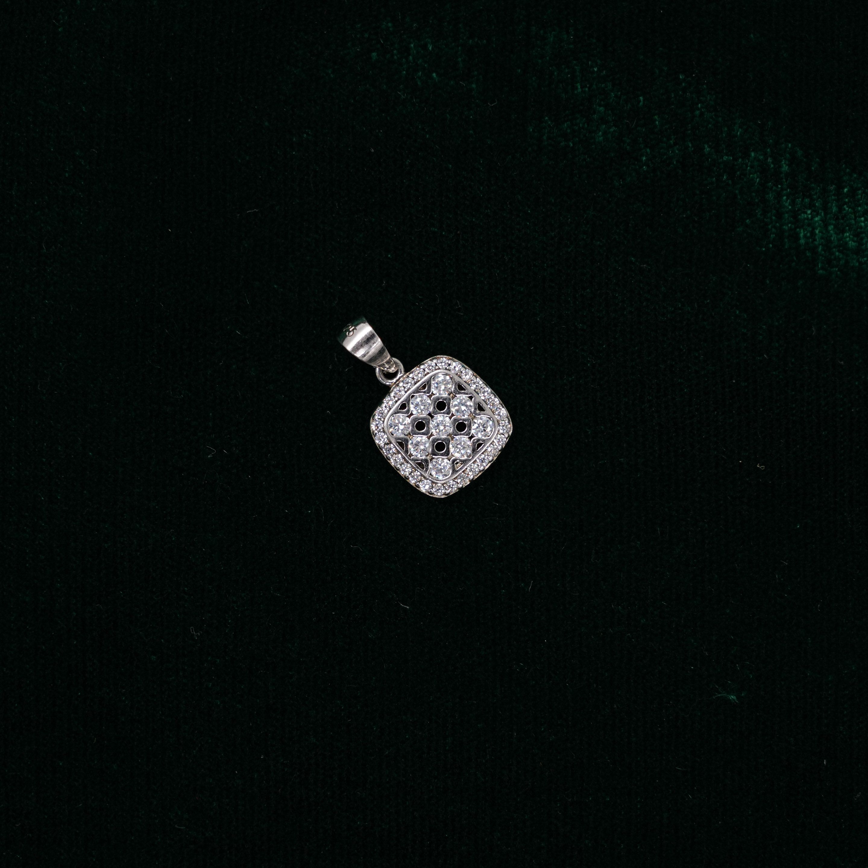 Square diamond stud pendant with intricate detailing, perfect for parties and festive occasions. Buy diamond stud pendant from Raag Silver Jewellery in Hyderabad.