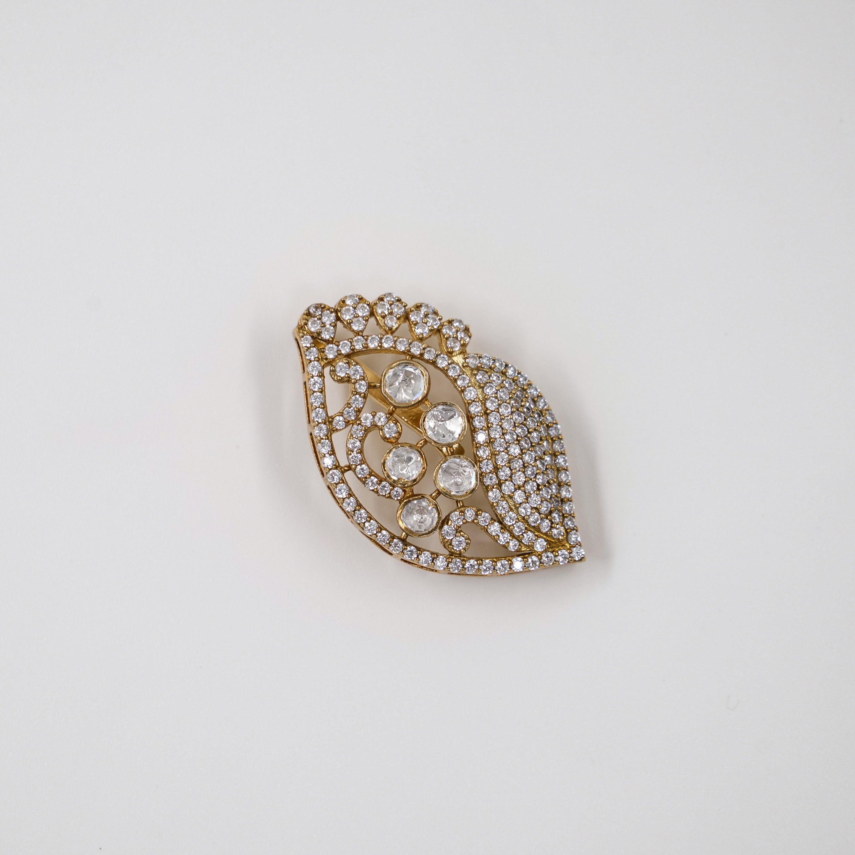 Elegant gold stud pendant with intricate diamond detailing, perfect for daily wear or special occasions. Buy gold stud pendant from Raag Silver Jewellery in Hyderabad.
