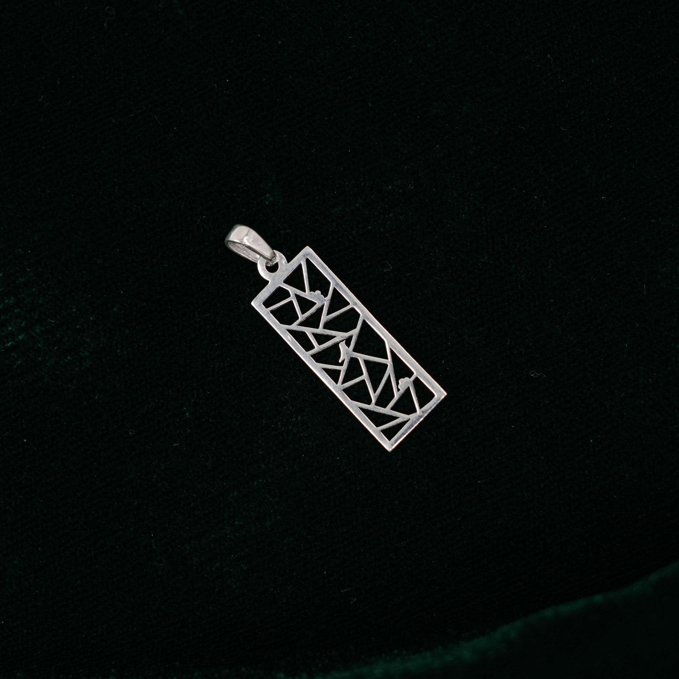 Elegant silver drop pendant with geometric lattice design, perfect for daily wear and special occasions. Buy silver drop pendant from Raag Silver Jewellery in Hyderabad.