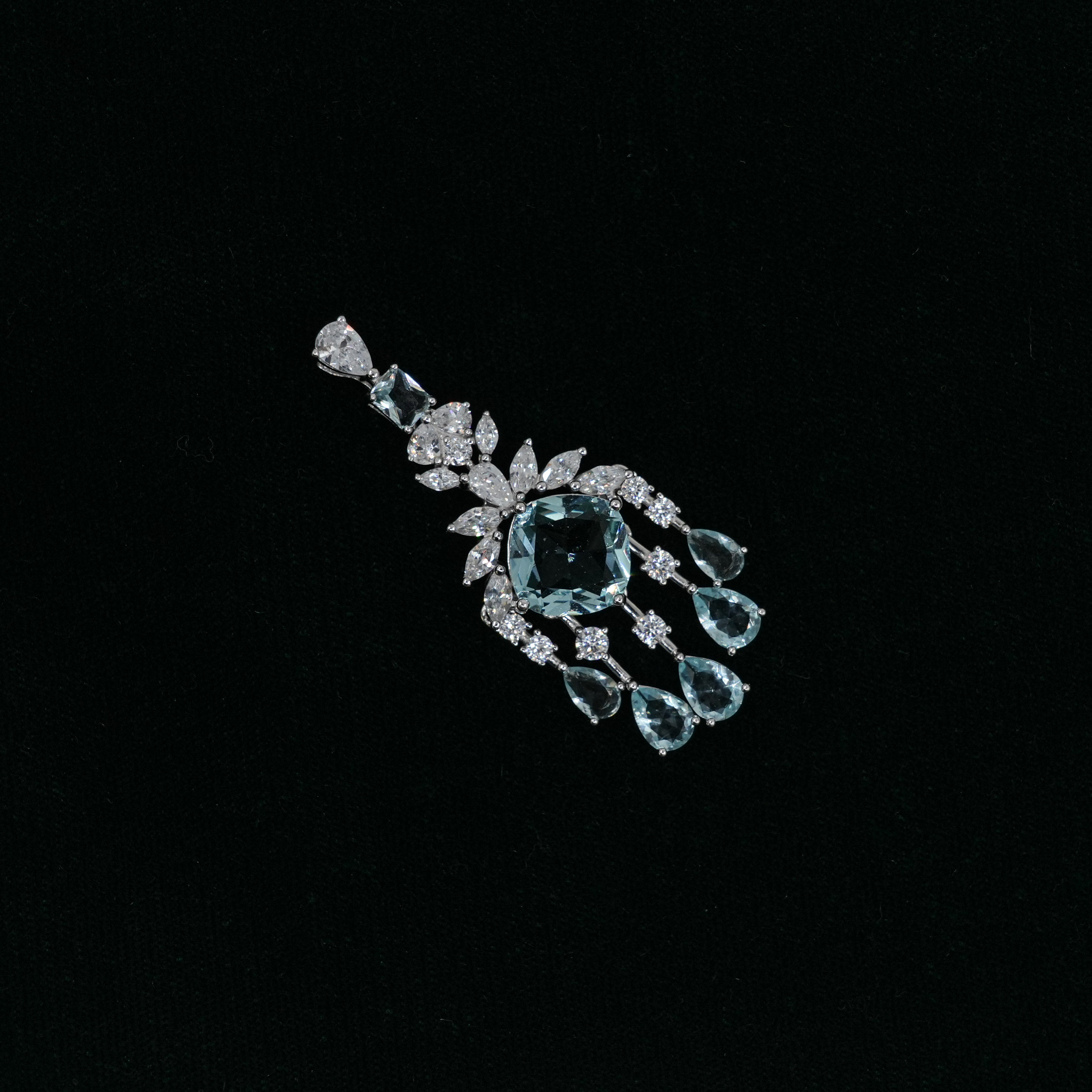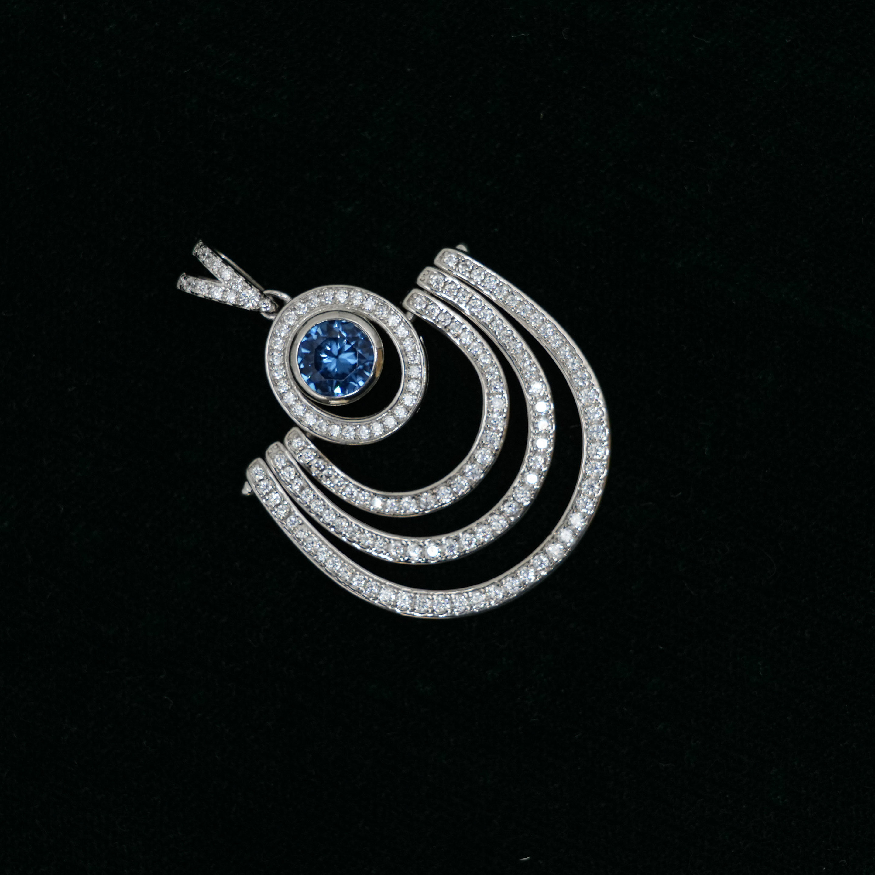 Elegant silver pendant set with blue stones and zircon detailing, perfect for daily wear. Buy silver pendant set from Raag Silver Jewellery in Hyderabad.