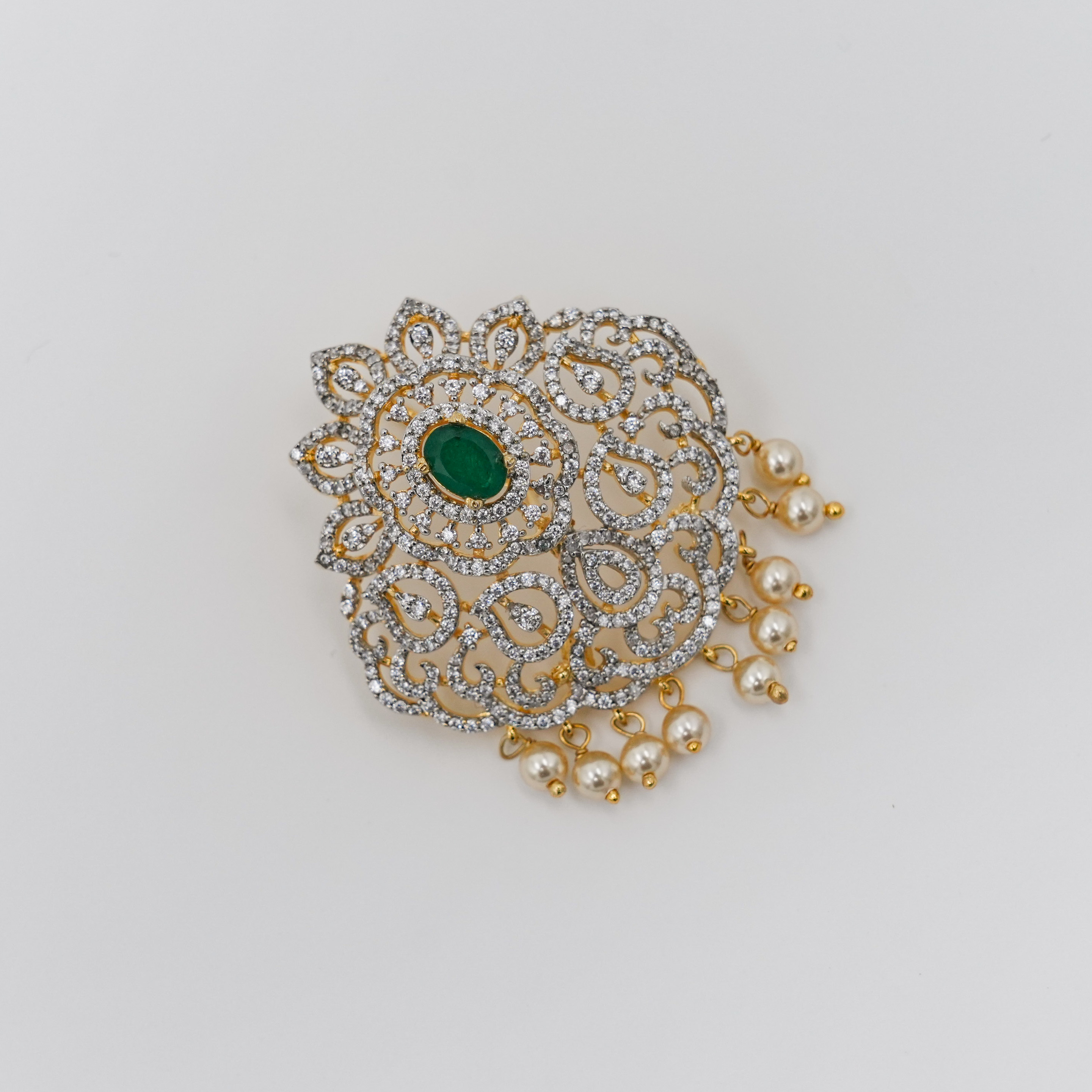 Floral design pendant set with pearls, perfect for festive wear and special occasions. Buy Emerald Pendant Set from Raag Silver Jewellery in Hyderabad.