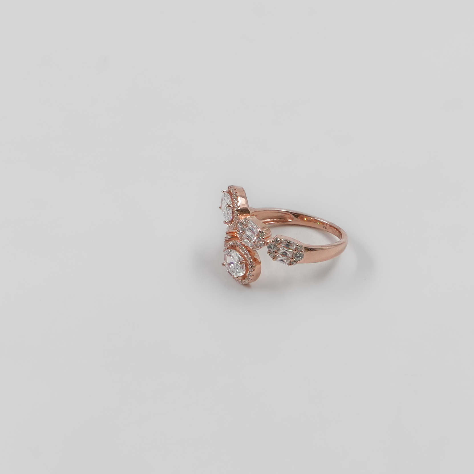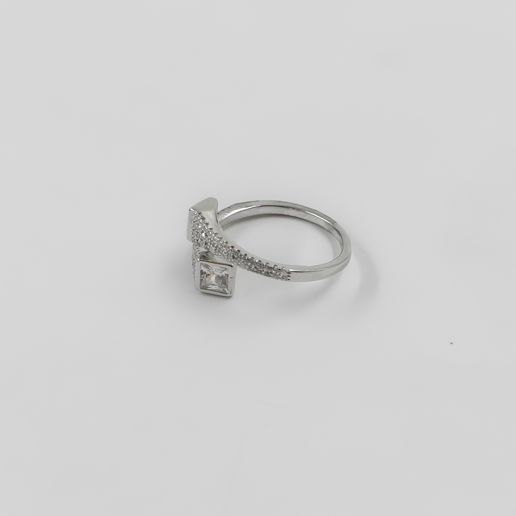 Elegant silver bypass ring with cubic zirconia stones, ideal for anniversaries and gifts. Buy silver bypass ring from Raag Silver Jewellery in Hyderabad.