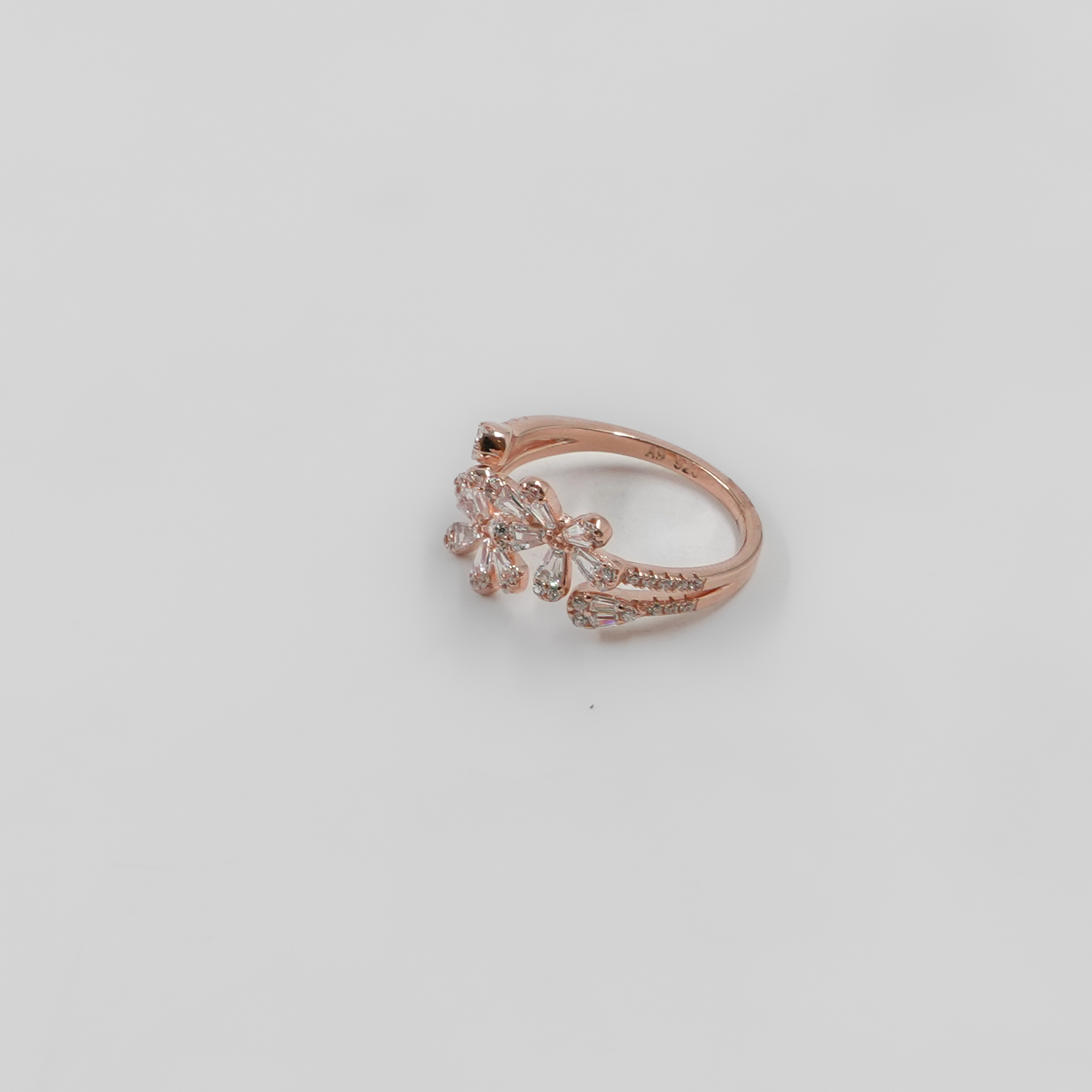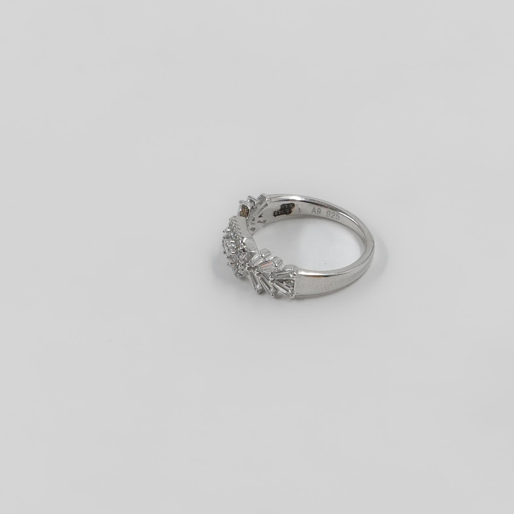 Sterling silver flower ring with baguette cut stones, ideal for everyday wear and gifting. Buy silver flower ring from Raag Silver Jewellery in Hyderabad.