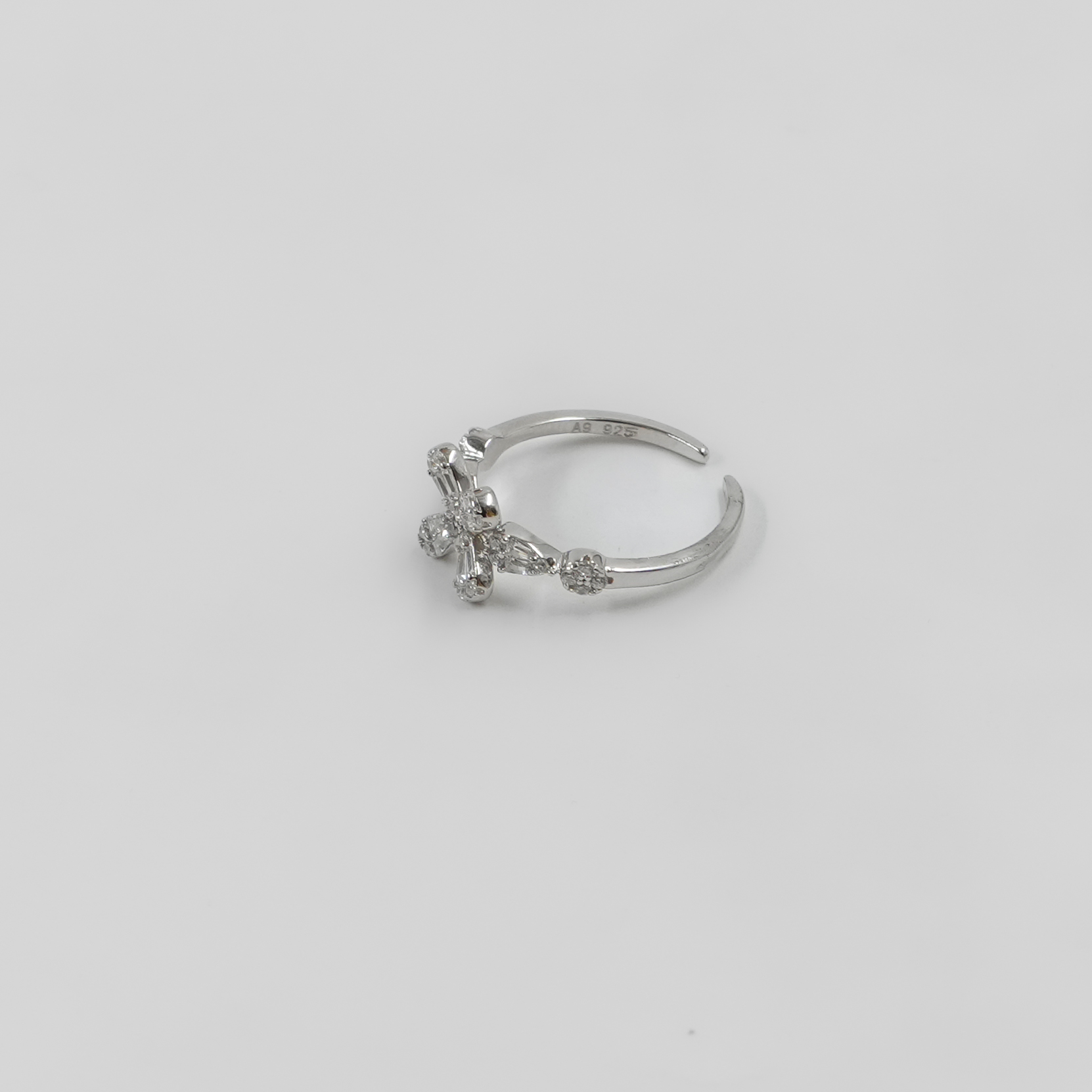 Elegant silver flower ring with sparkling stones, perfect for adding a touch of glamour to any occasion. Buy silver flower ring from Raag Silver Jewellery in Hyderabad.