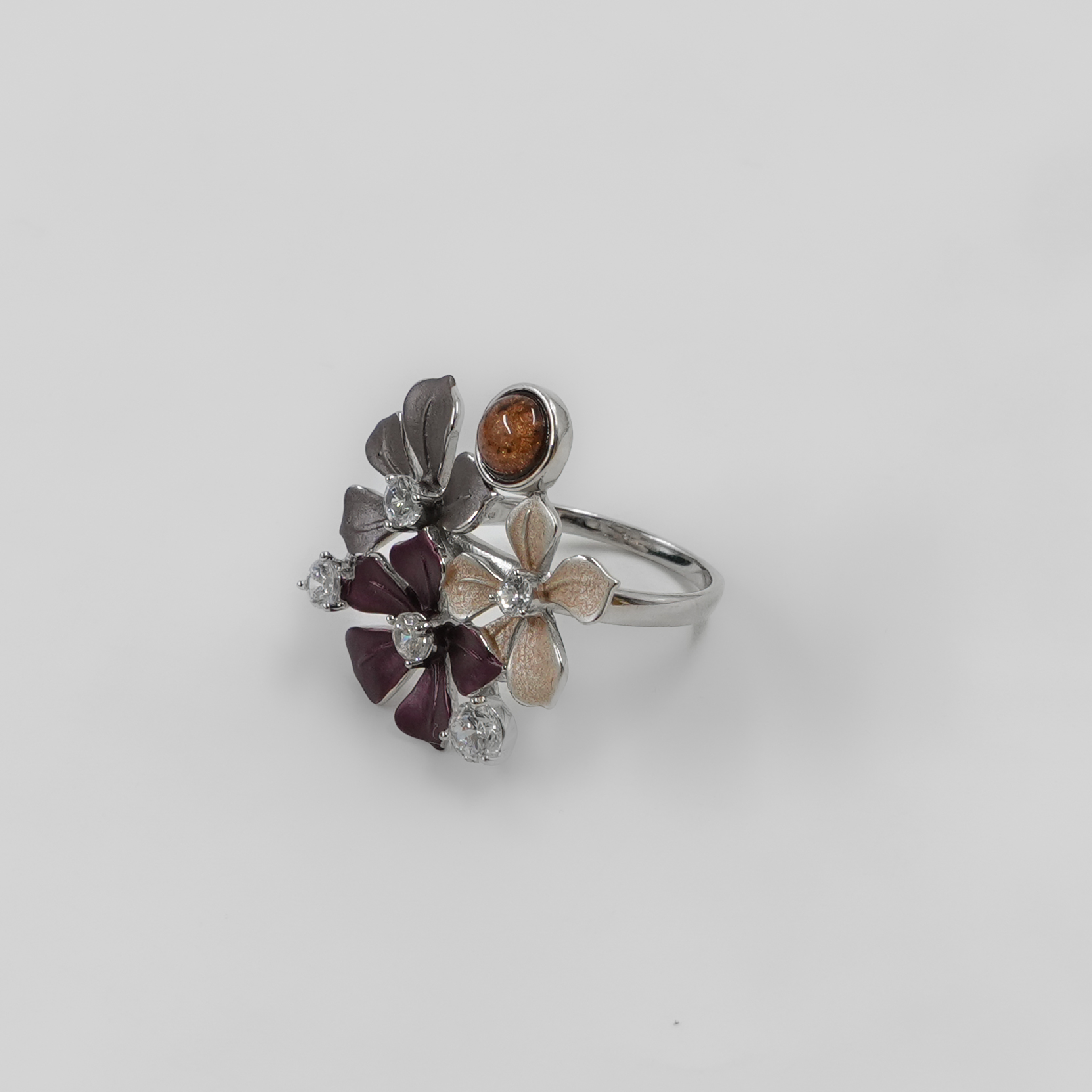 Elegant floral silver ring with stone detailing, perfect for parties and everyday wear. Buy floral silver ring from Raag Silver Jewellery in Hyderabad.