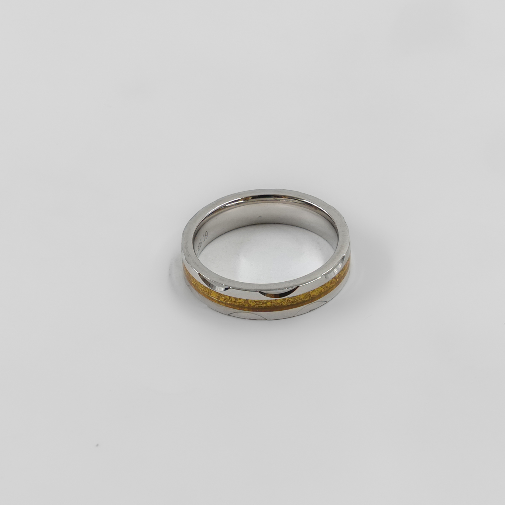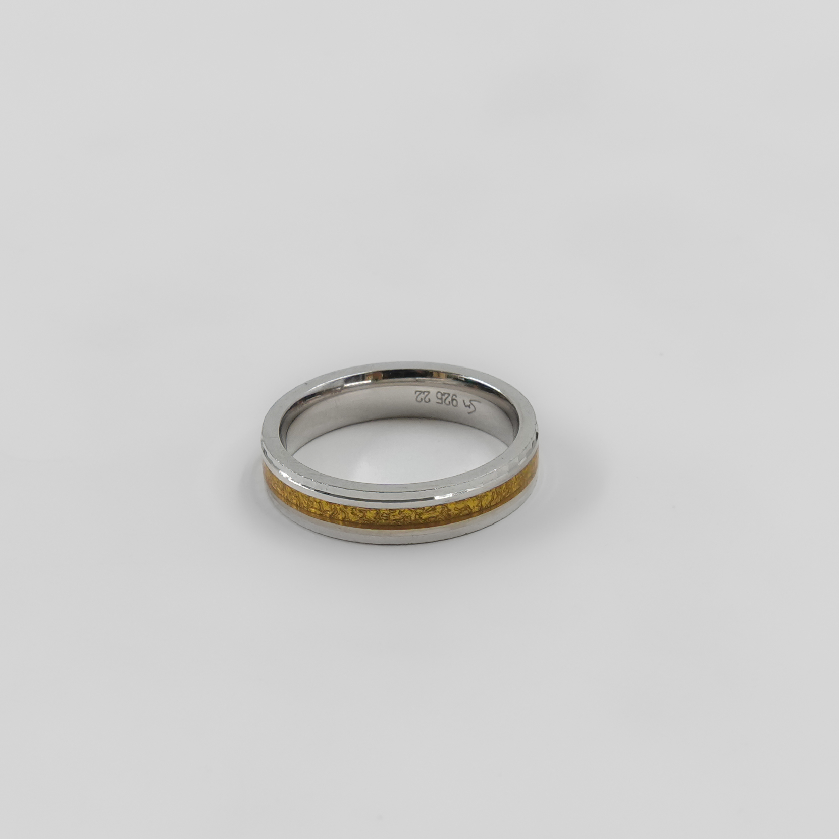 Elegant silver band ring with gold inlay, perfect for everyday wear and special occasions. Buy silver band ring from Raag Silver Jewellery in Hyderabad.