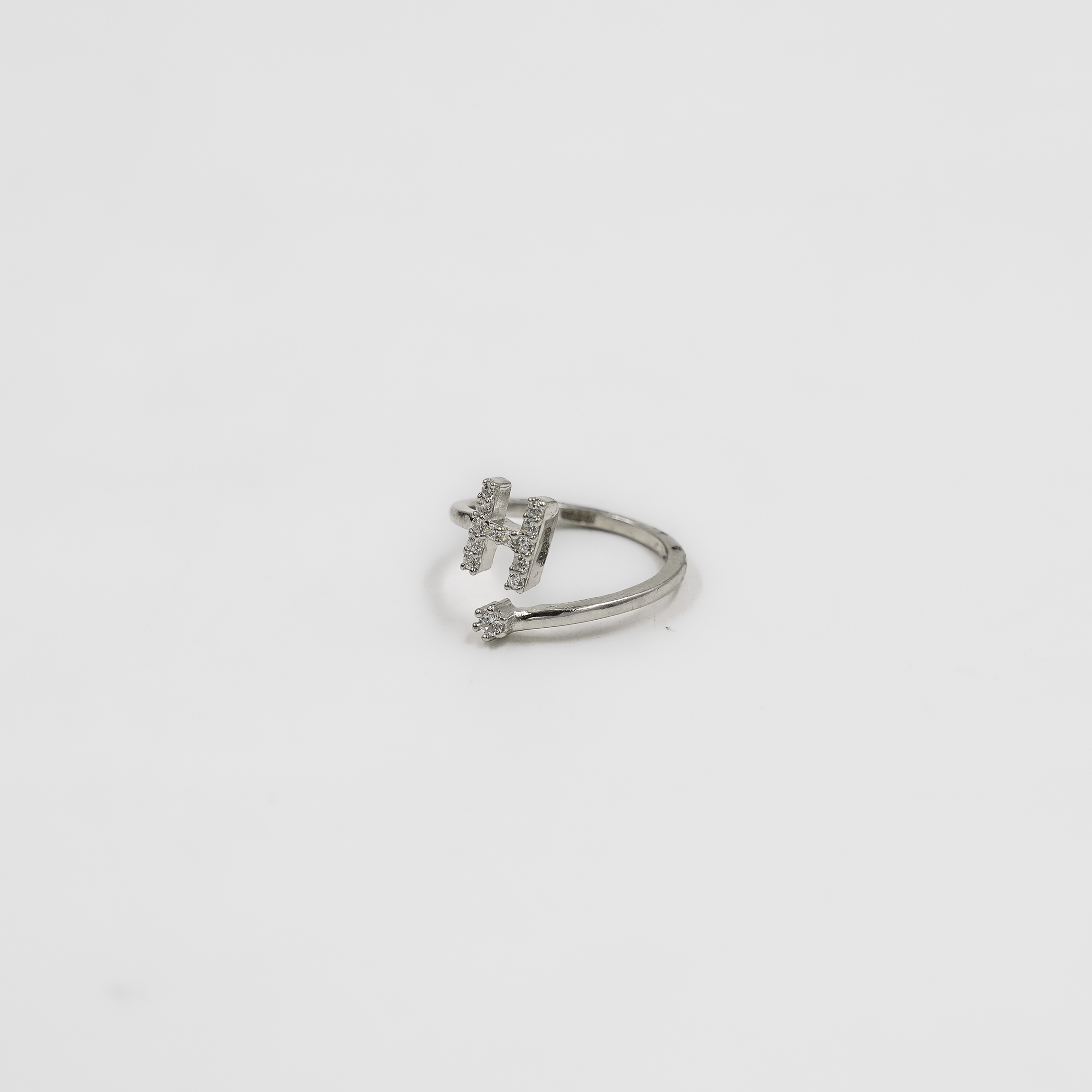 Silver Cubic Zirconia Initial H Ring Adjustable Silver Jewellery