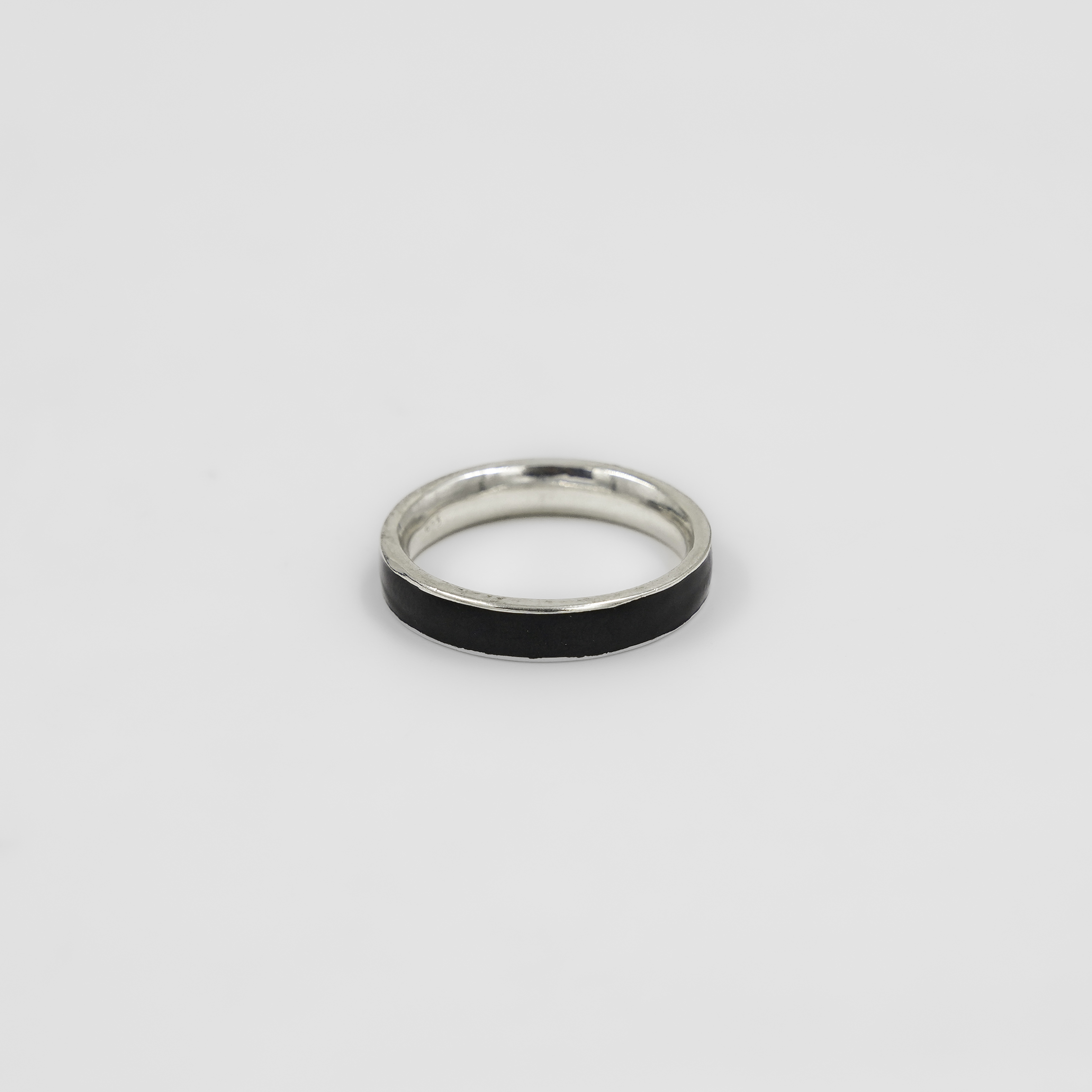 Elegant Silver Ring With Black Resin Inlay Minimalist Design