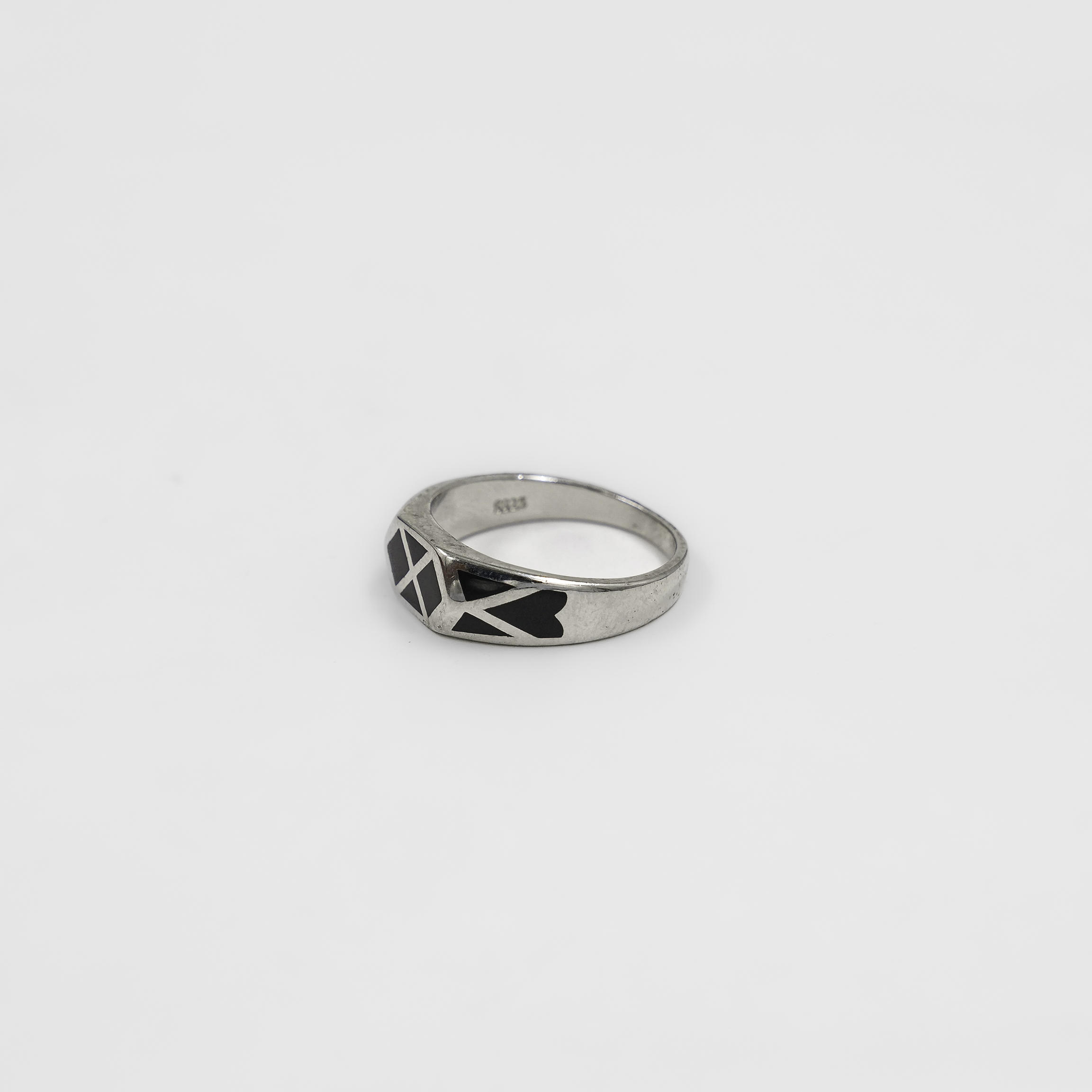 Silver Geometric Pattern Black Inlay Silver Ring Jewellery
