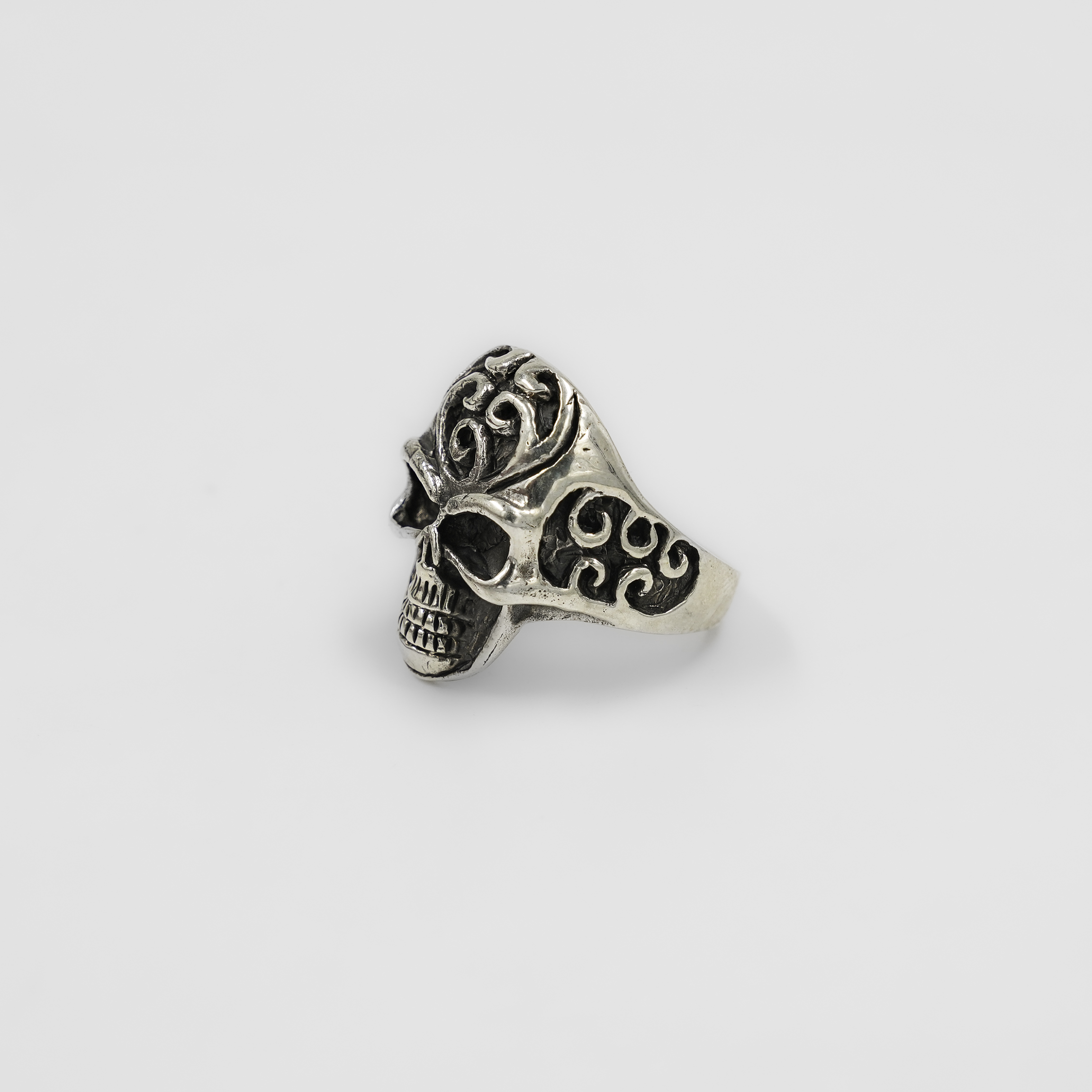 Ornate Silver Skull Ring Detailed Design Gothic Jewellery