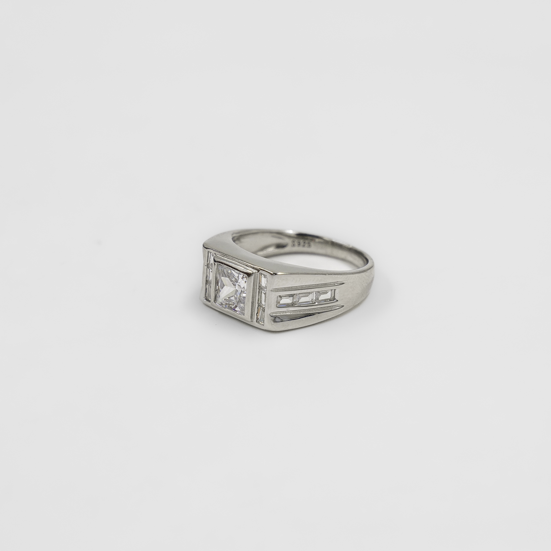 Elegant Sterling Silver Cubic Zirconia Statement Ring Square Cut
