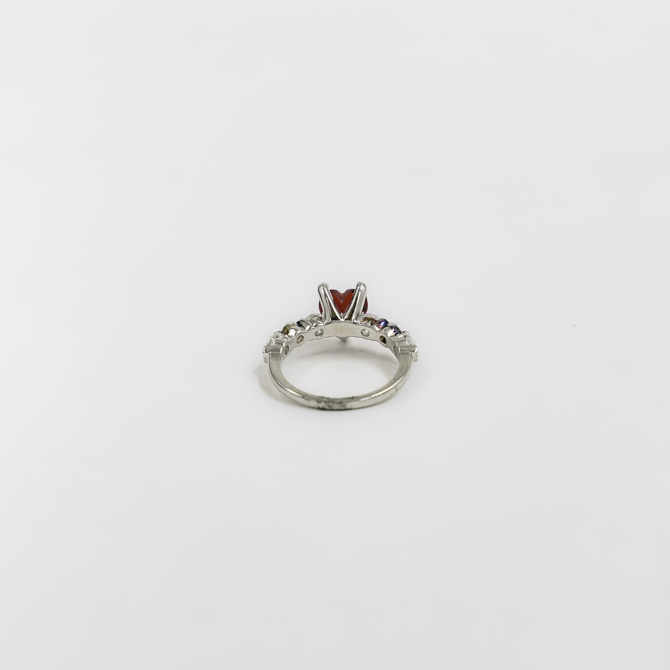 Elegant Silver Ring With Heart Shaped Ruby Stone Detailing