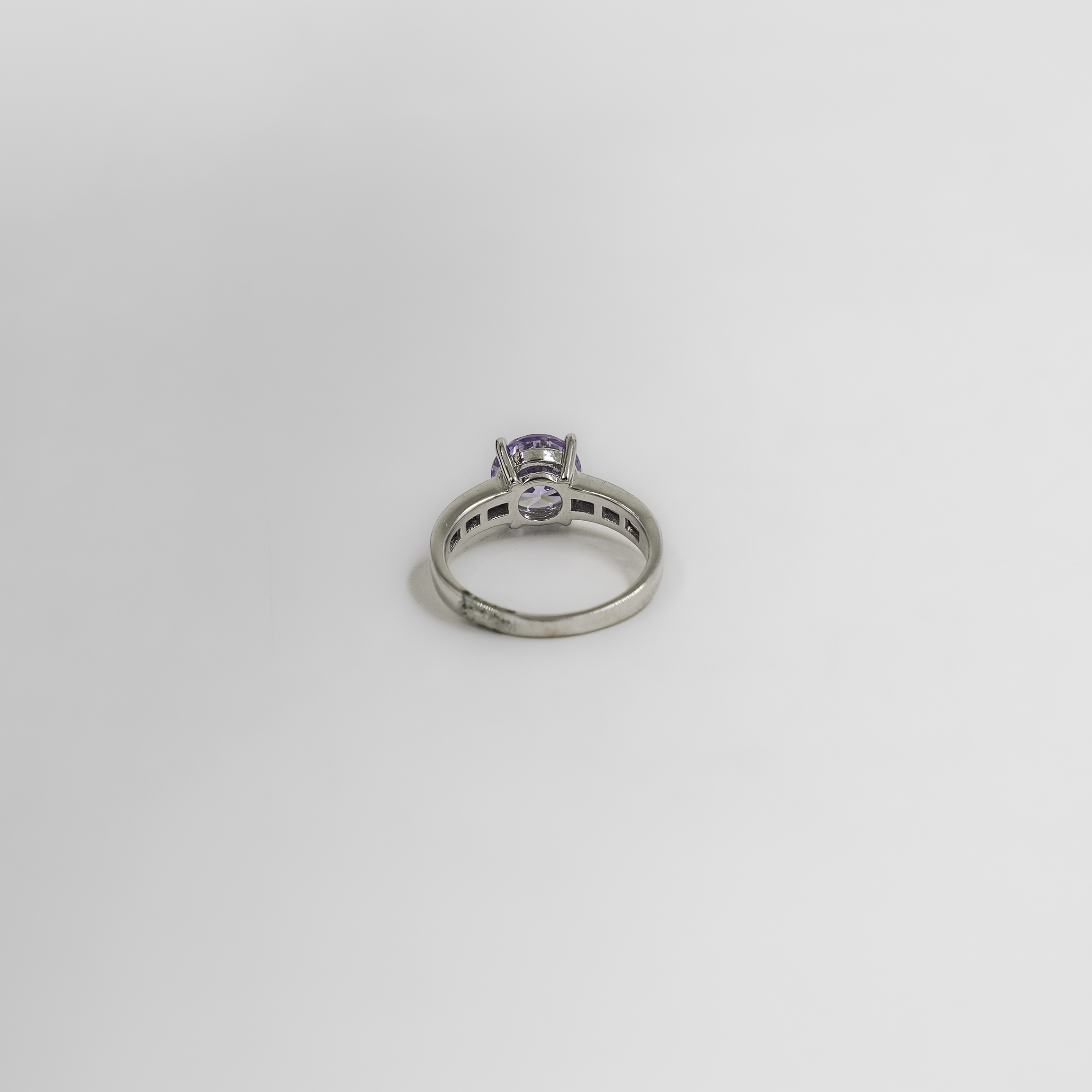 Elegant Silver Ring With Amethyst Gemstone Channel Set Design