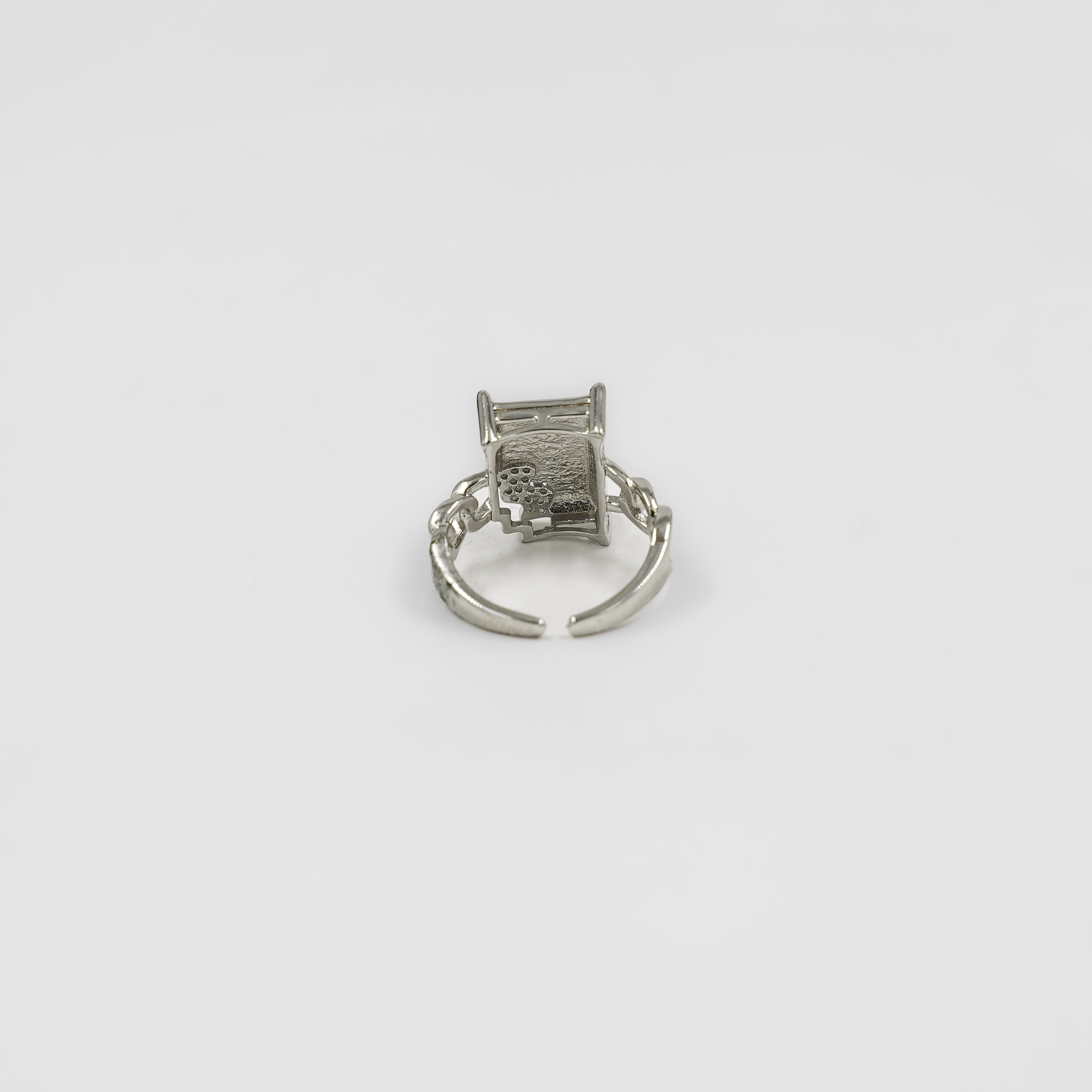 Classic Silver Rectangular Stone Fashion Ring With Detail