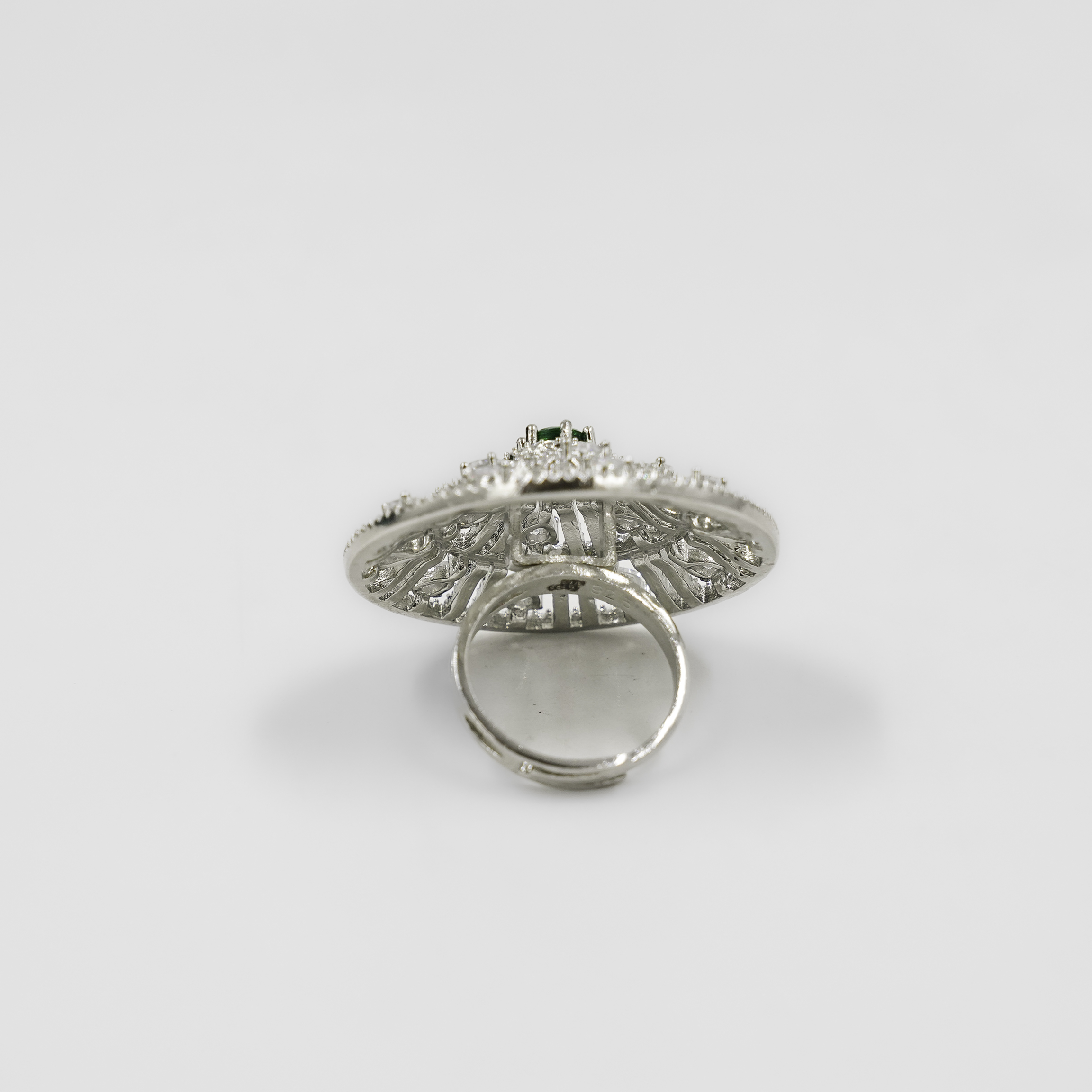 Elegant Sterling Silver Green Emerald Cluster Ring Jewellery Piece