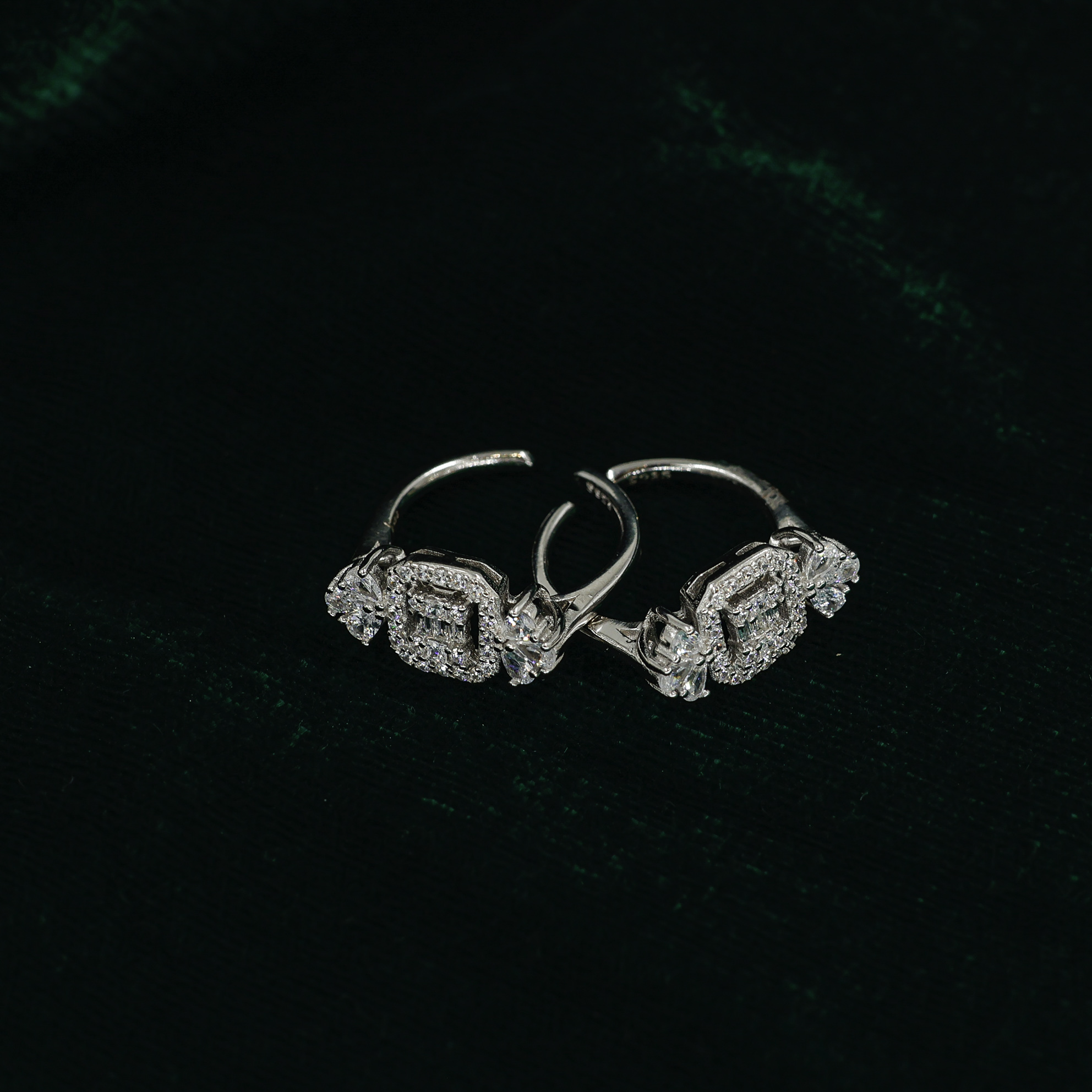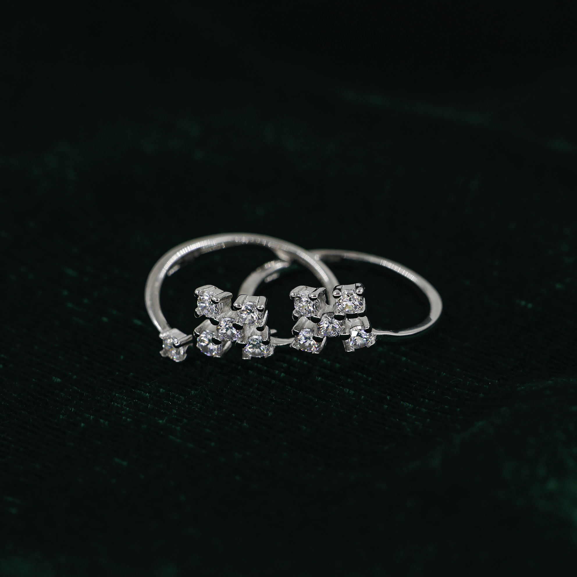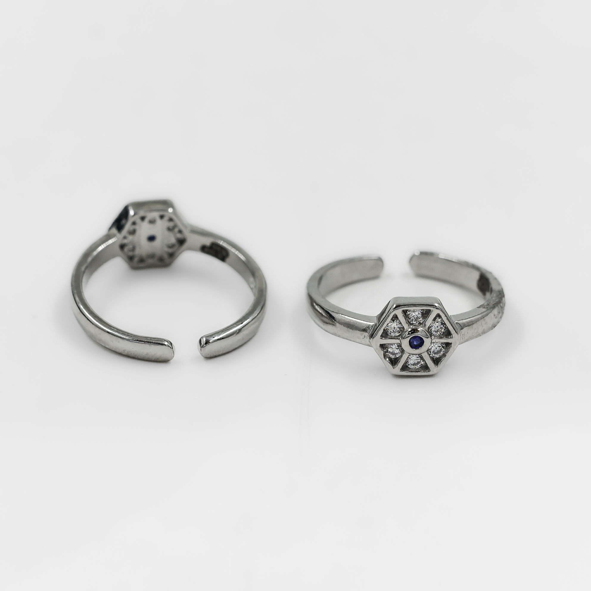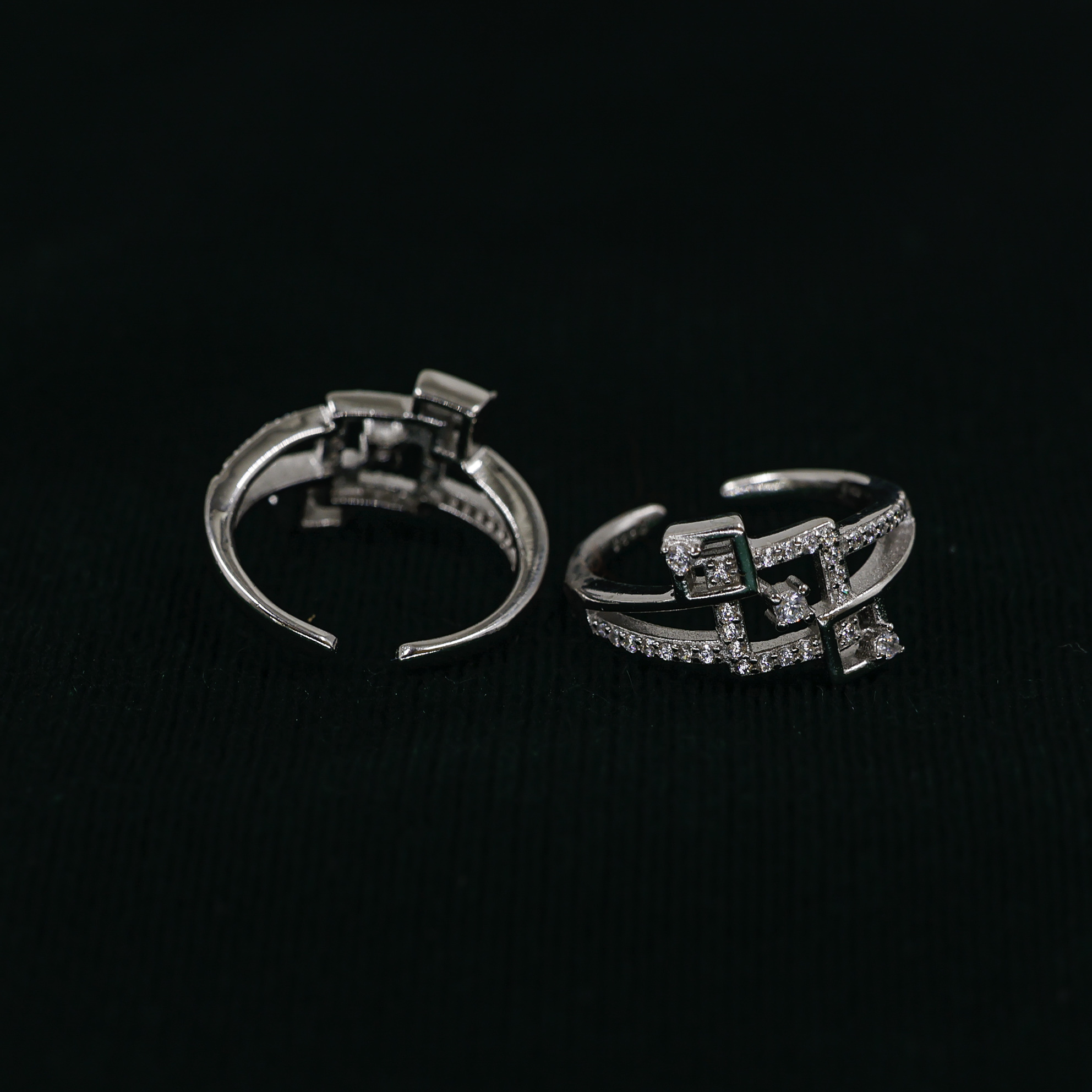 Intricate silver geometric ring with sparkling stones, perfect for everyday wear or special occasions. Buy silver geometric ring from Raag Silver Jewellery in Hyderabad.
