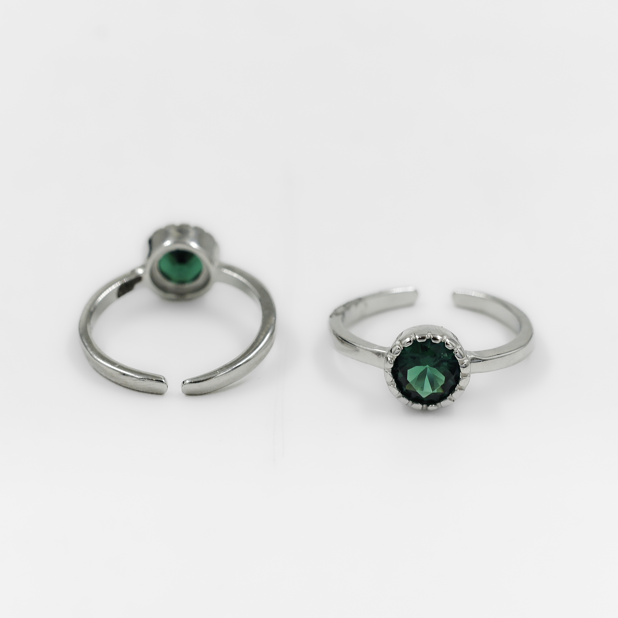 Adjustable silver emerald ring with a classic design, perfect for everyday wear or special occasions. Buy silver emerald ring from Raag Silver Jewellery in Hyderabad.