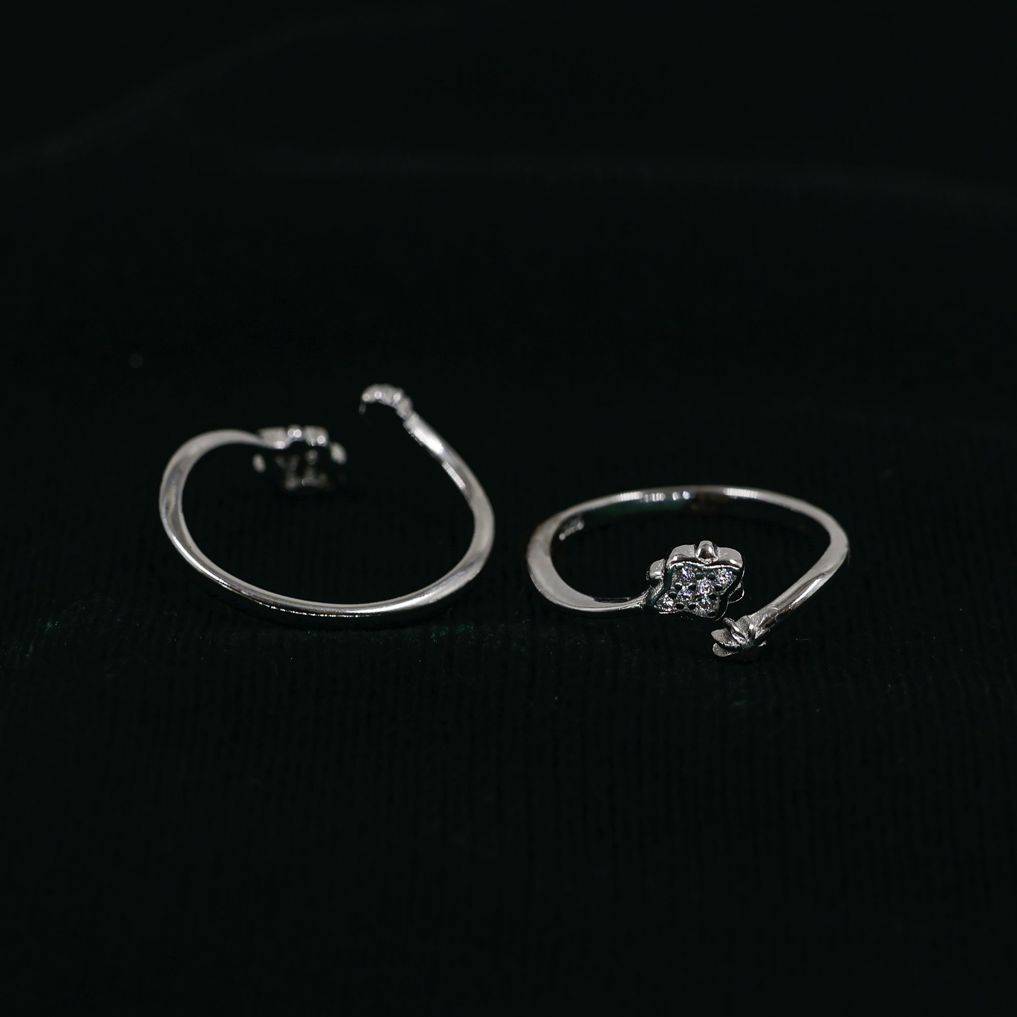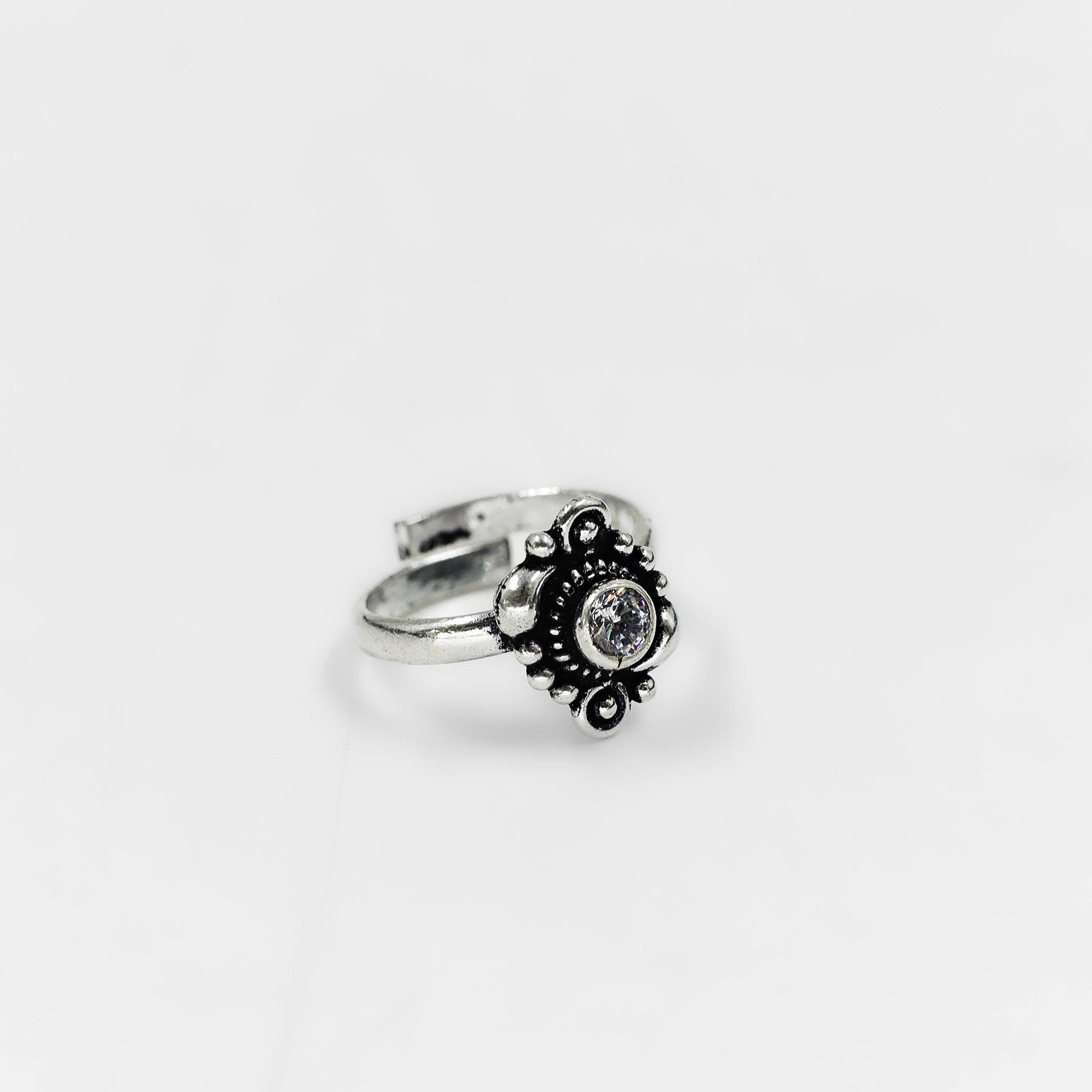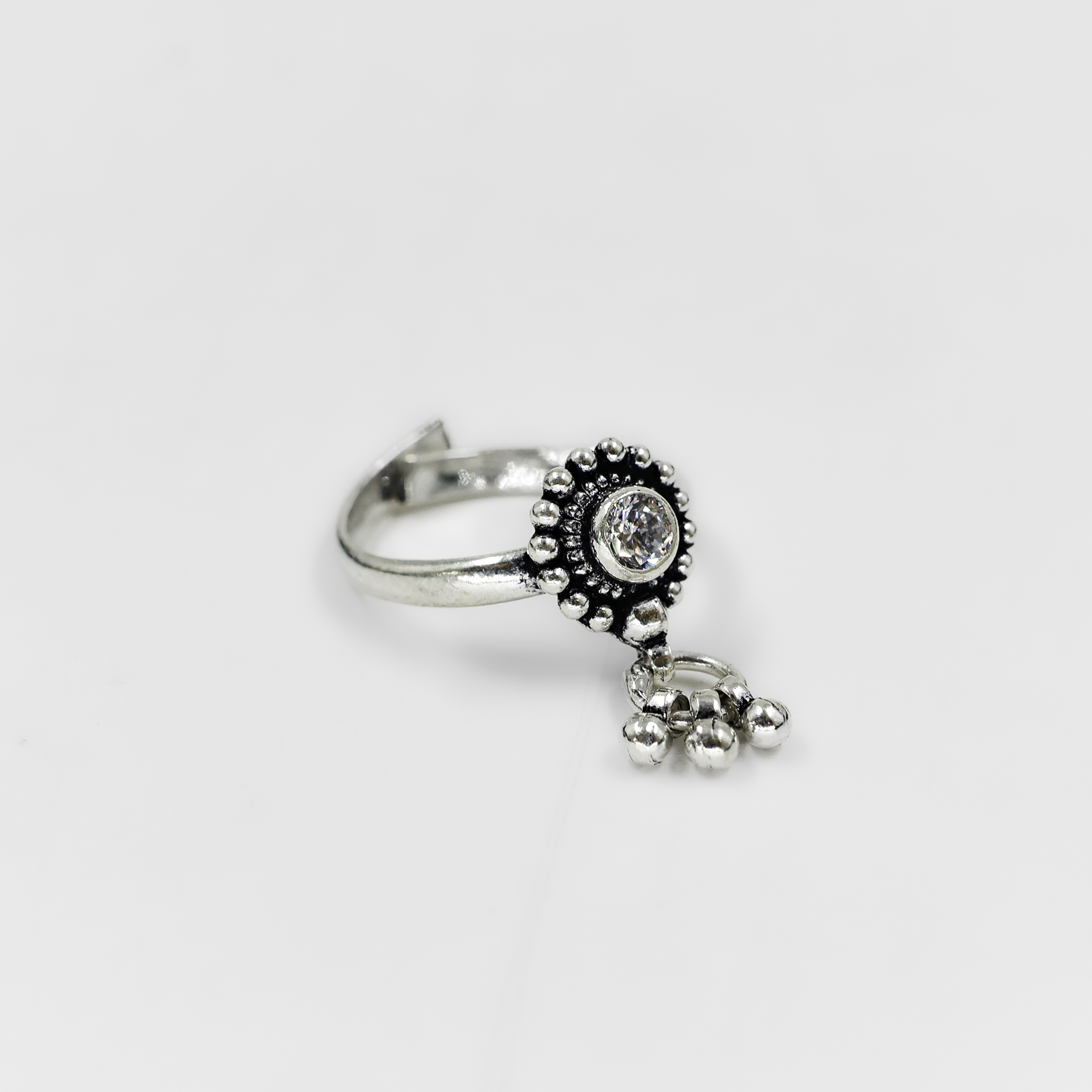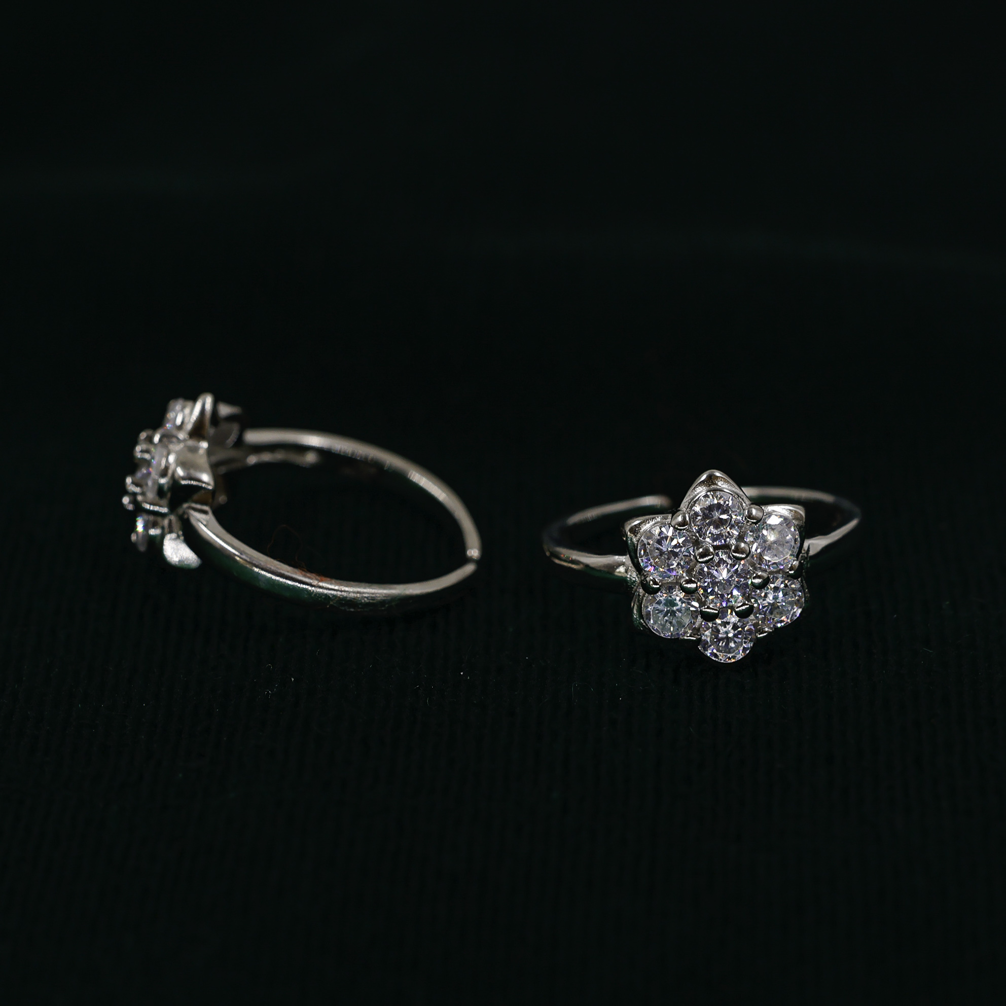 Elegant silver toe ring with studded floral design, perfect for traditional and everyday wear. Buy silver toe ring from Raag Silver Jewellery in Hyderabad.
