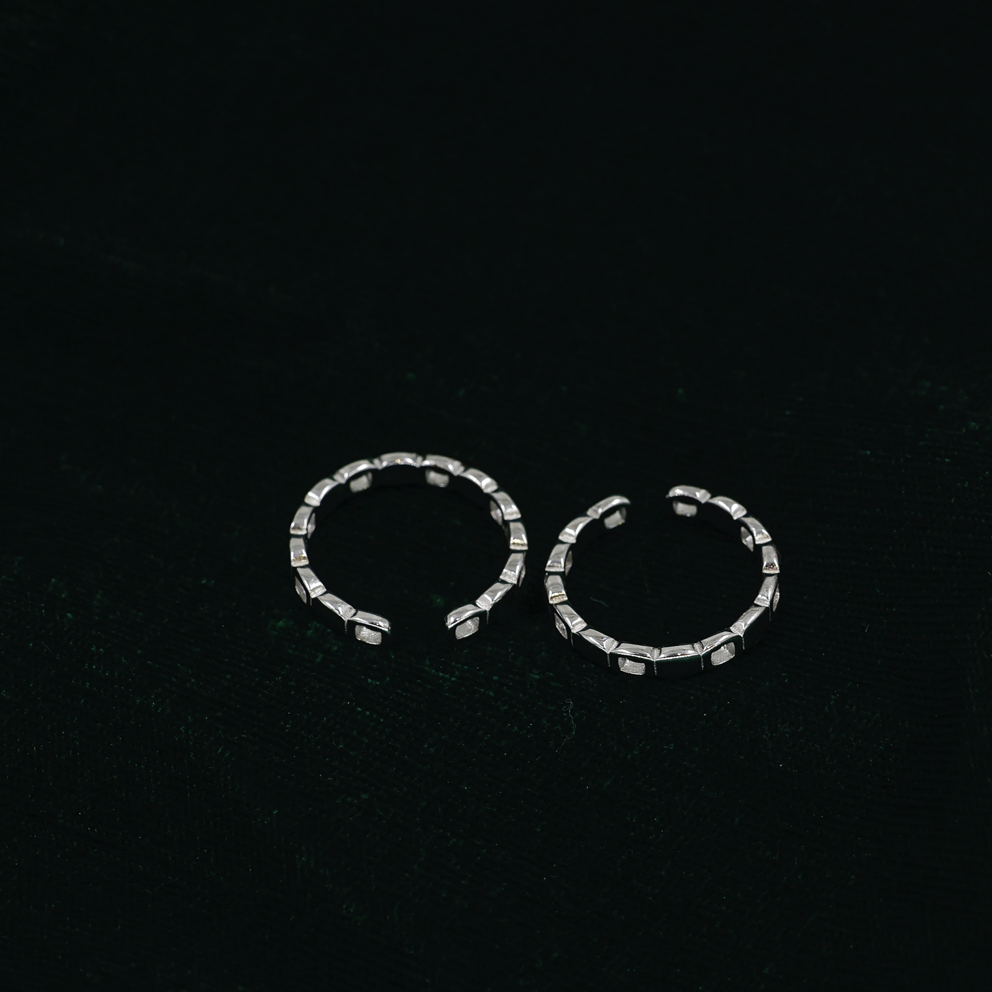 Adjustable silver toe ring with geometric design, perfect for adding a touch of elegance to your look. Buy silver toe ring from Raag Silver Jewellery in Hyderabad.